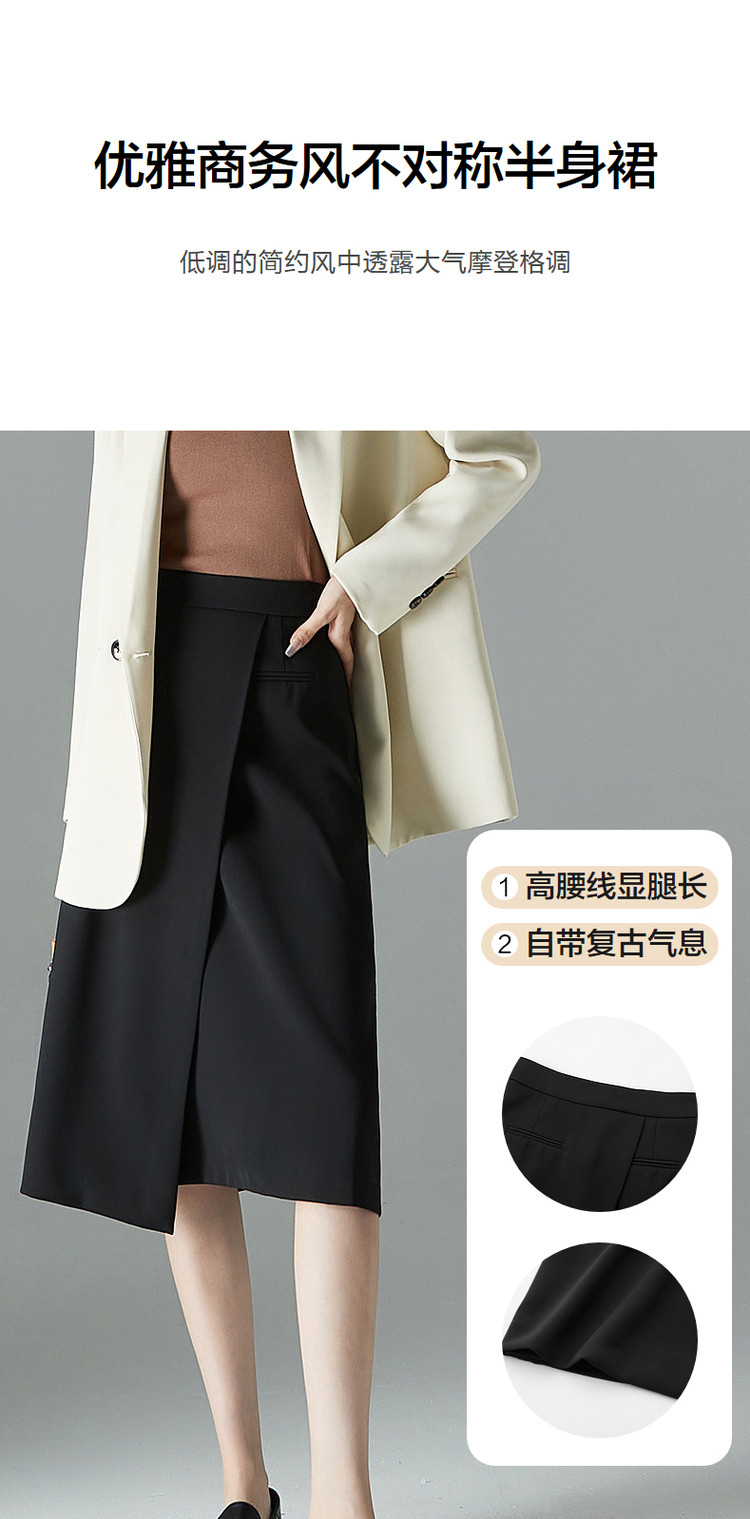 商品名称:【美拉德轻通勤】春秋新优雅OL商务中腰不规则半身裙女中长款 495873