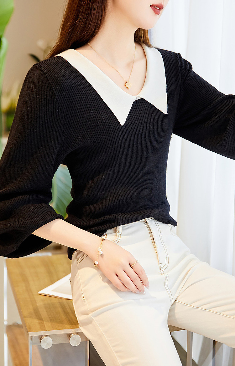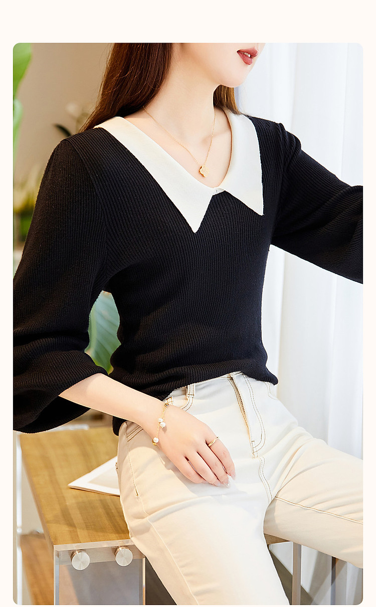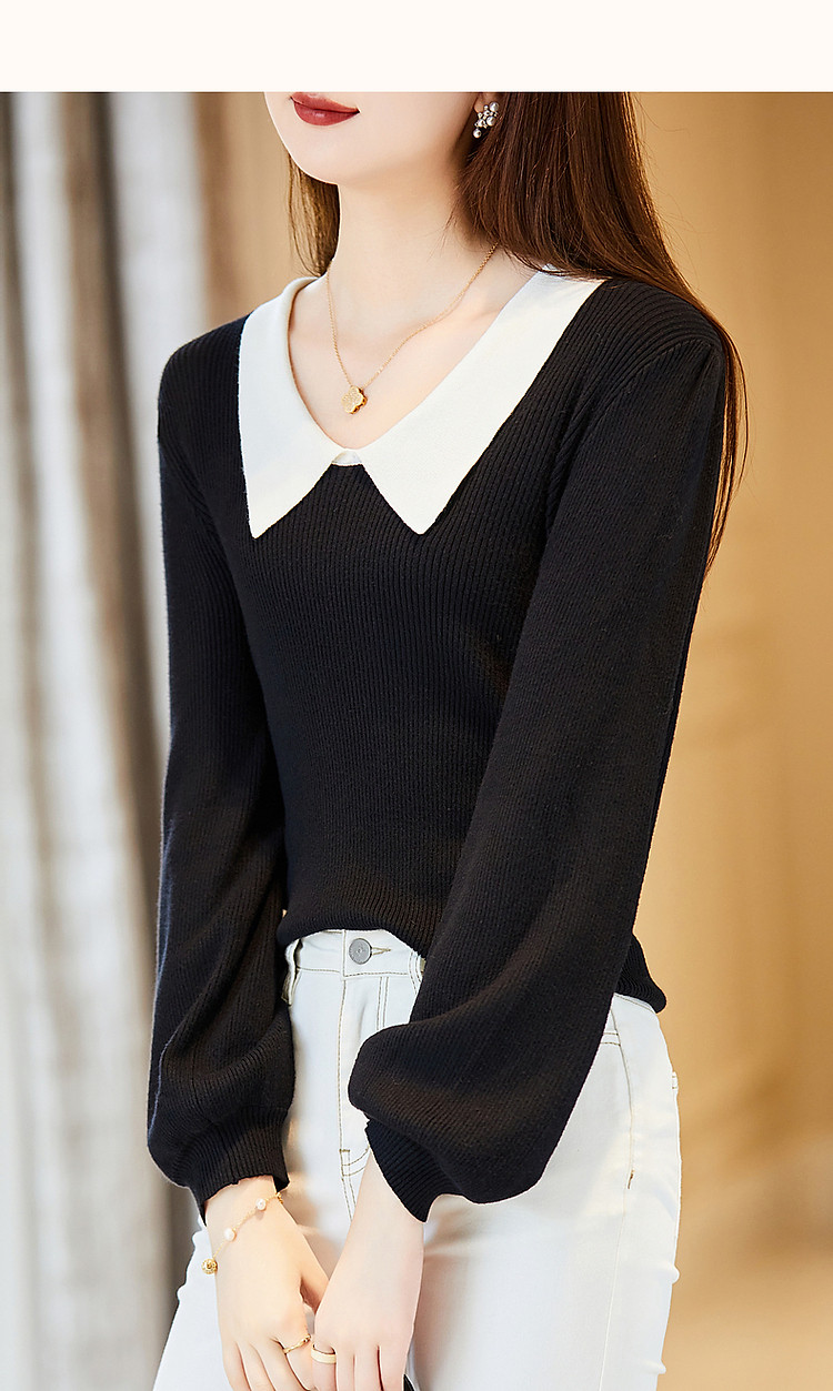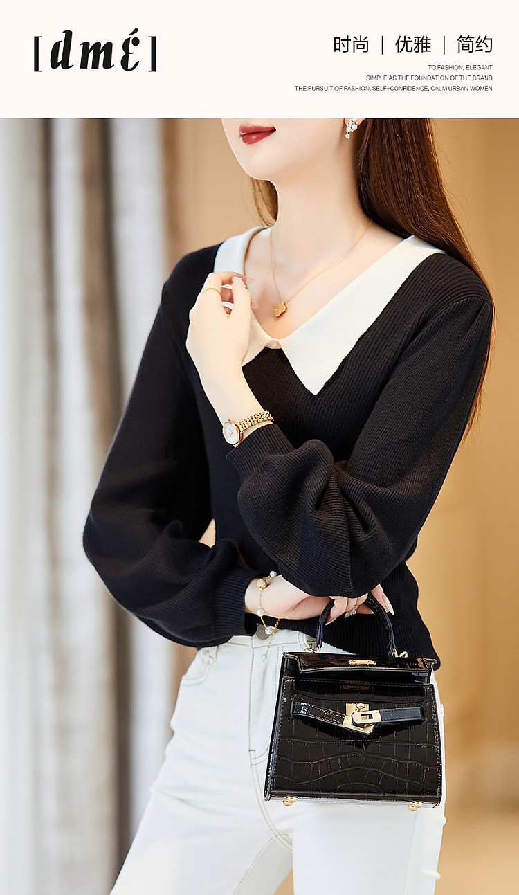 商品名称:【复古小家碧玉】春秋款娃娃领线衫甜美小个子针织衫女上衣 873409