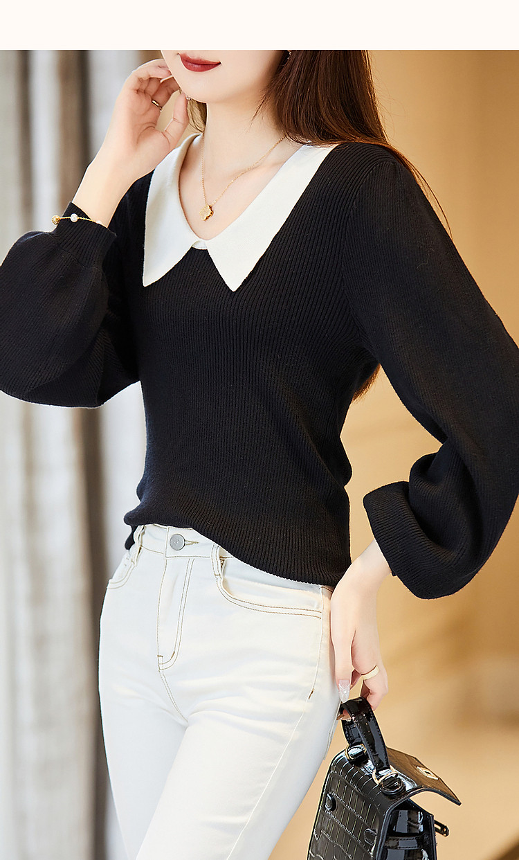 【复古小家碧玉】春秋款娃娃领线衫甜美小个子针织衫女上衣 873409