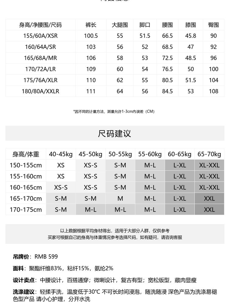 商品名称:【专柜同款】中腰宽松休闲简约气质春秋休闲裤女 791761