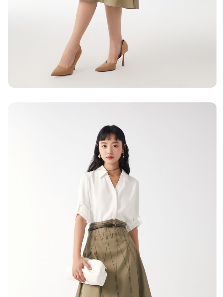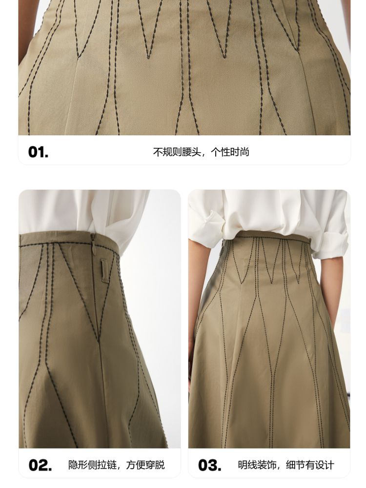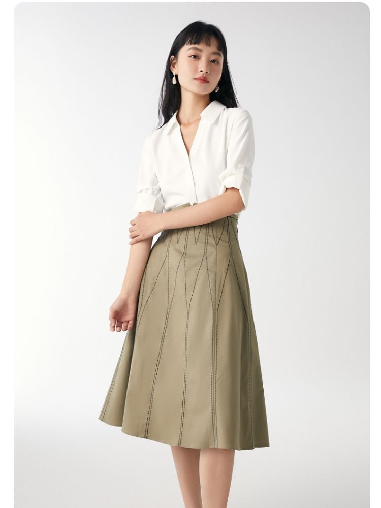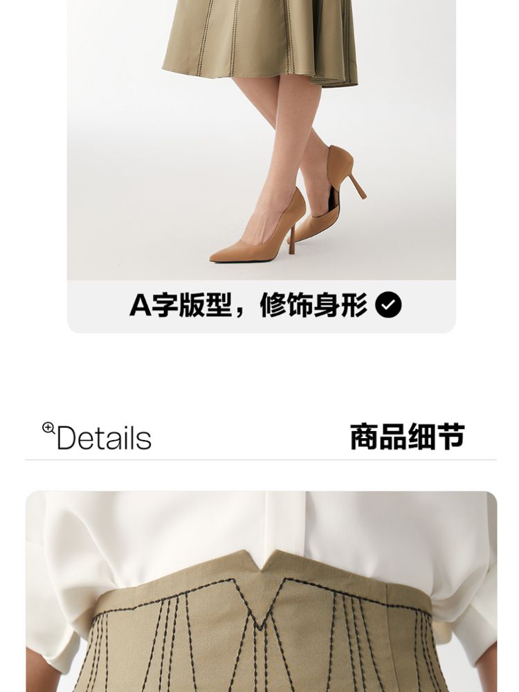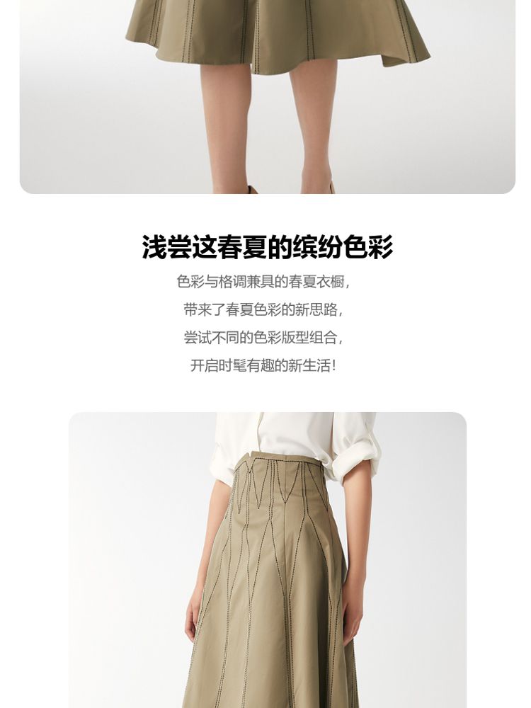 商品名称:【高腰简约】春夏专柜款A字中长迷笛纯色半身裙气质百搭时尚 168849