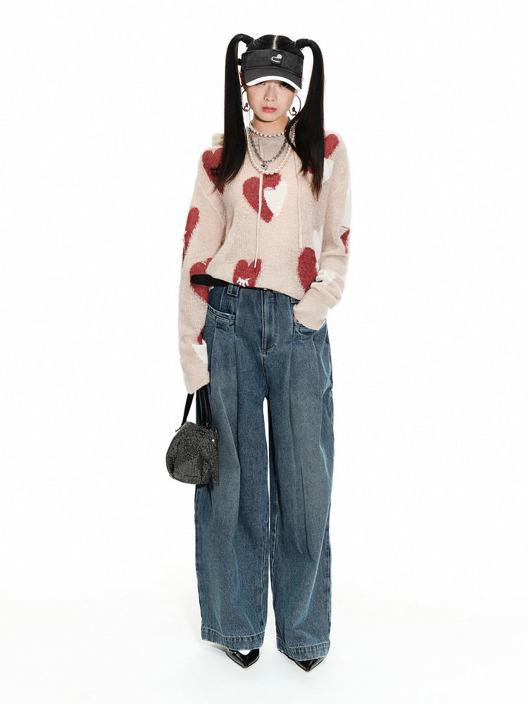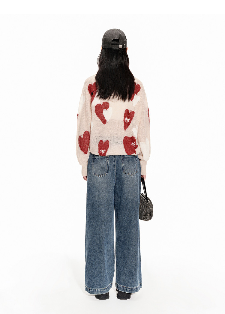 地素春秋专柜爱心撞色图案纽扣毛衣长袖衫女 179403