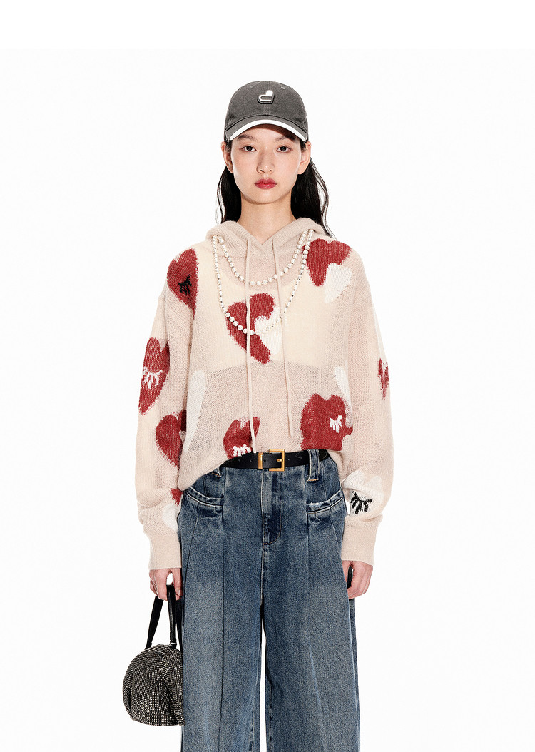 商品名称:地素春秋专柜爱心撞色图案纽扣毛衣长袖衫女 179403