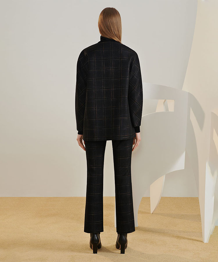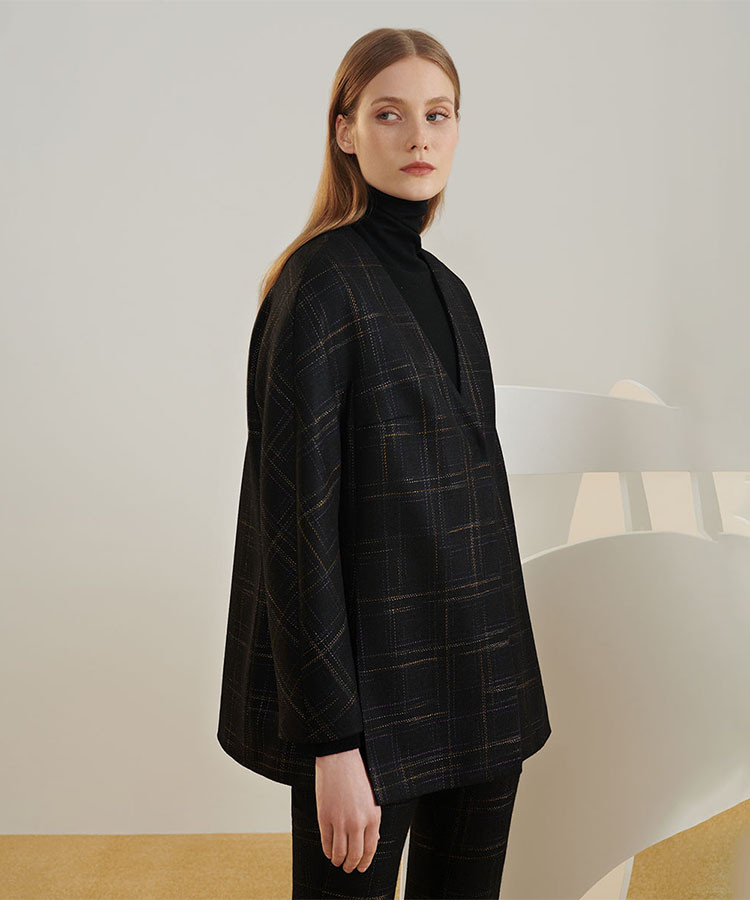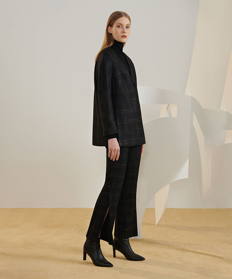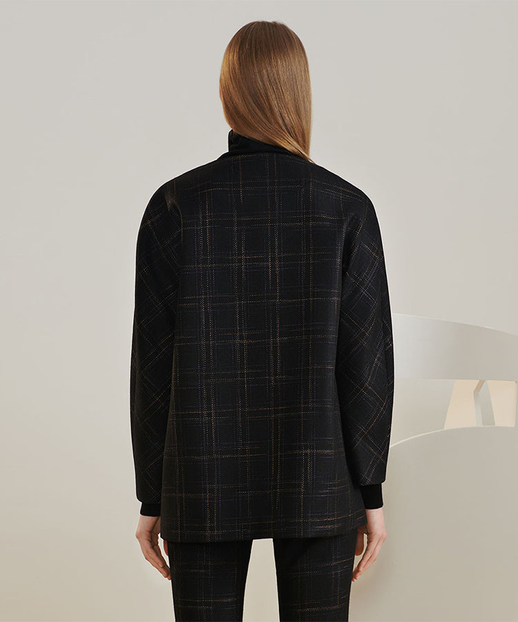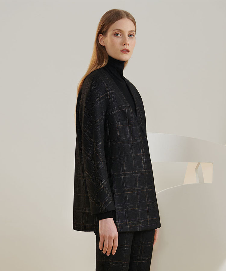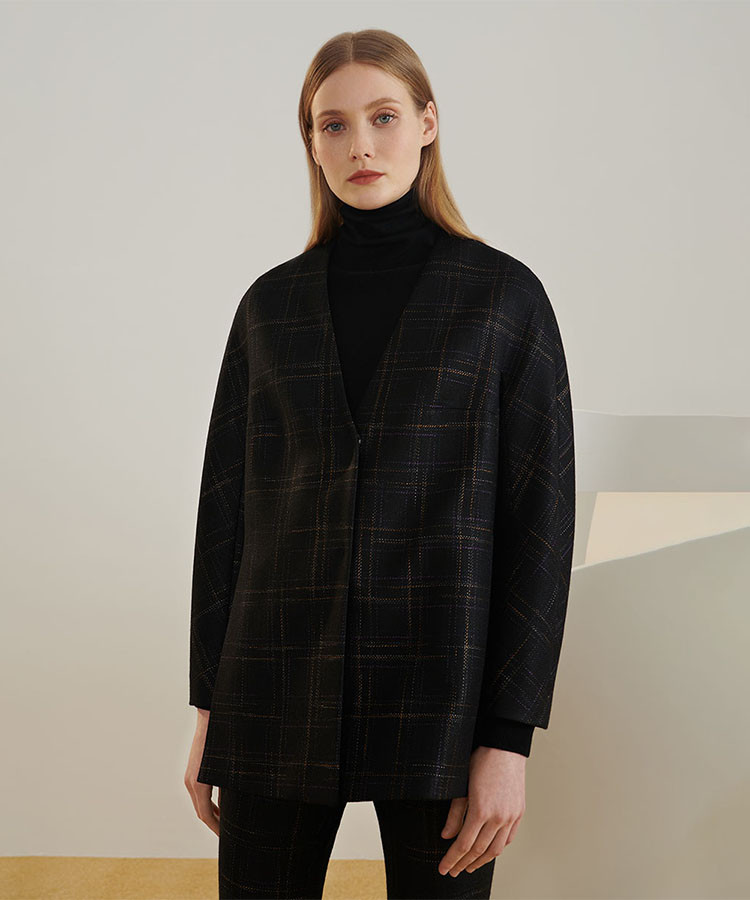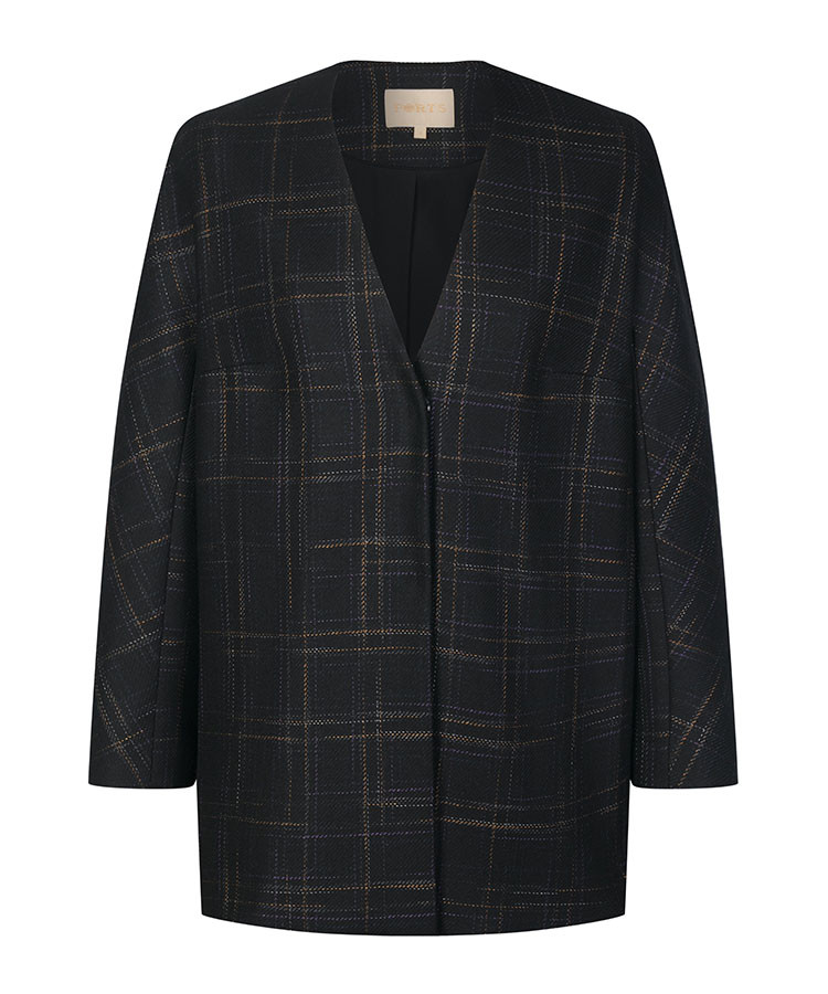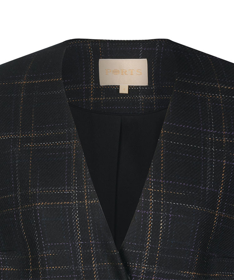 商品名称:宝姿女装秋冬格纹长袖短款气质夹克外套 164362