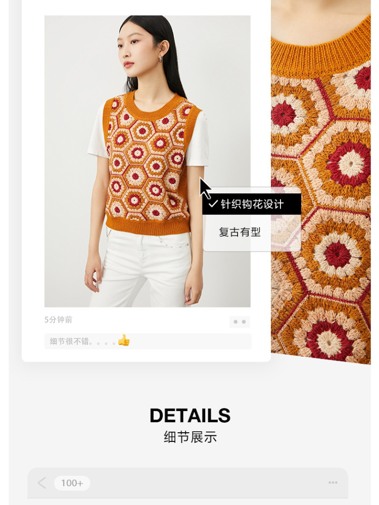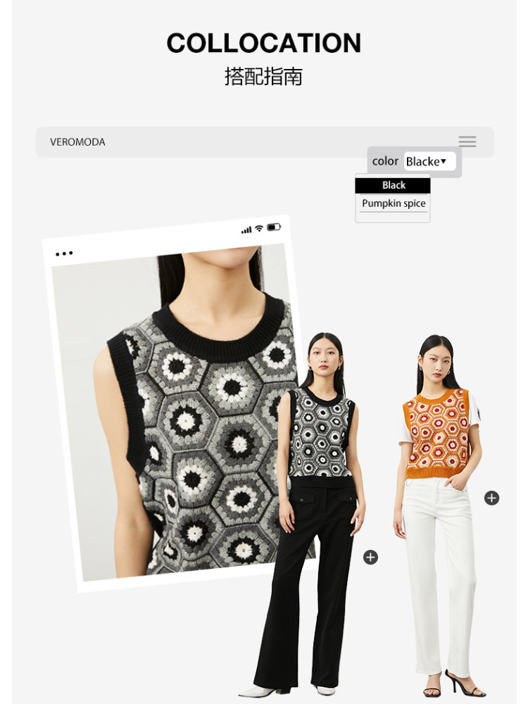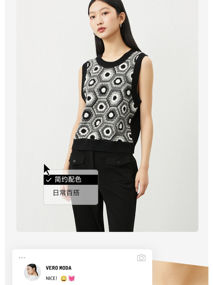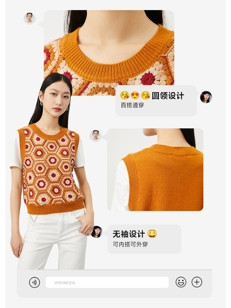 商品名称:【专柜同款】春夏针织钩花无袖背心复古优雅休闲针织衫女百搭时尚 969809