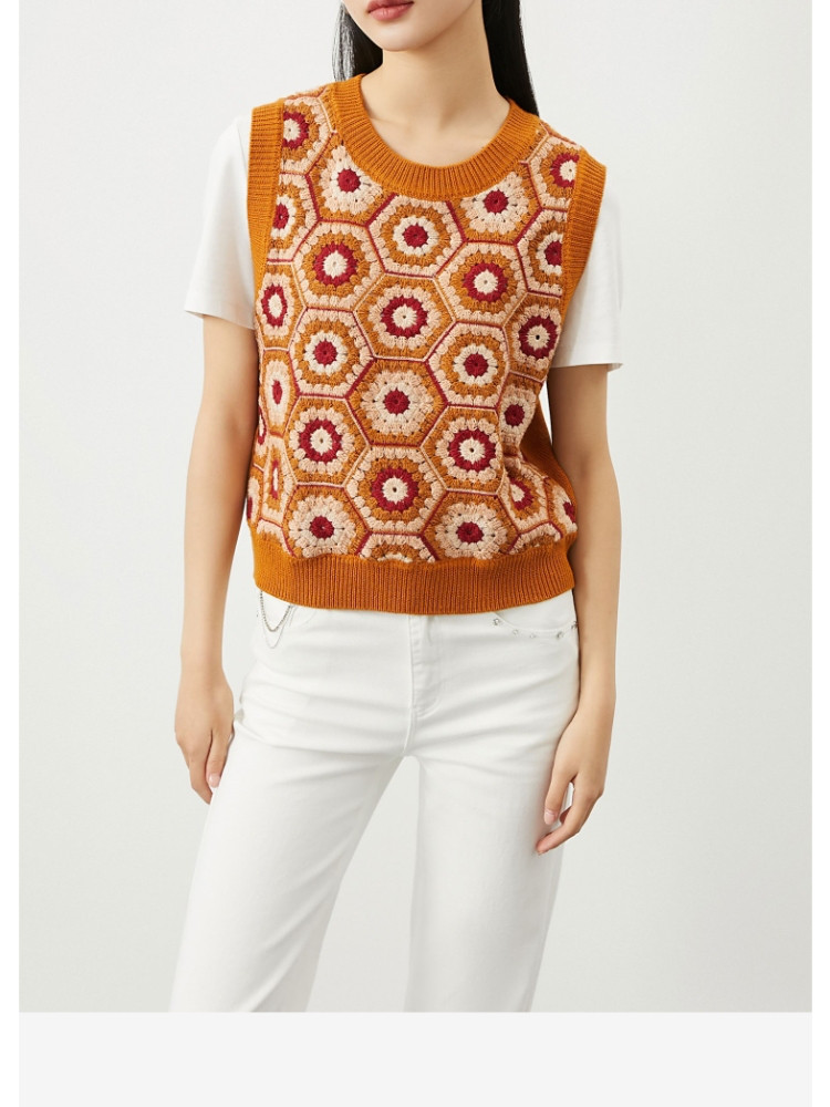 【专柜同款】春夏针织钩花无袖背心复古优雅休闲针织衫女百搭时尚 969809