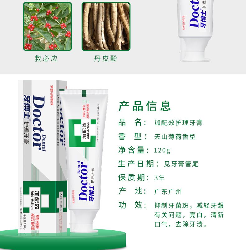 商品名称:牙博士加配疗中药护理牙膏120*1+牙刷*2