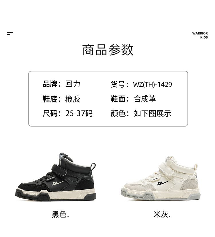 商品名称:童鞋儿童休闲鞋男童女童百搭板鞋秋季高帮魔术贴童鞋 109320