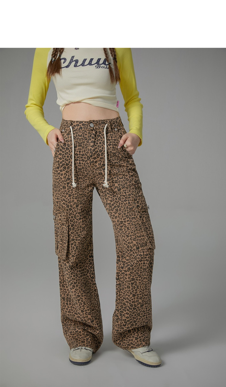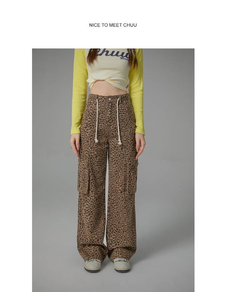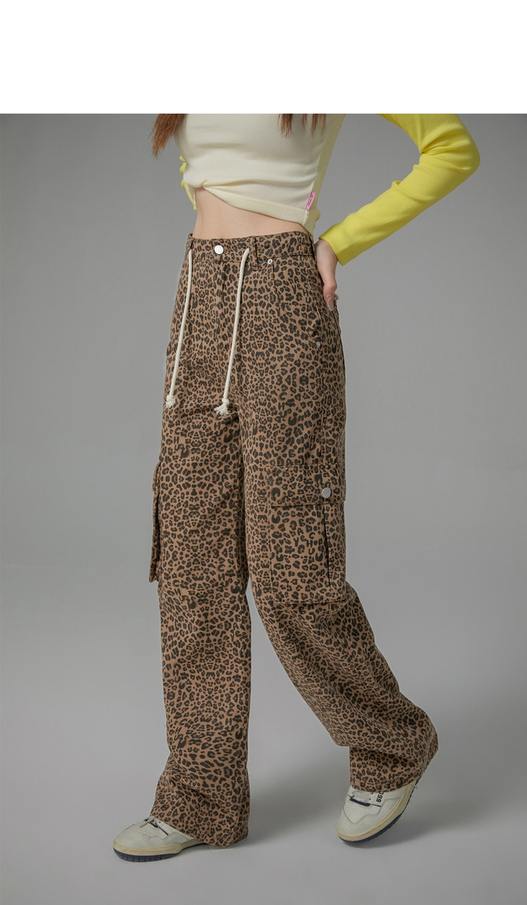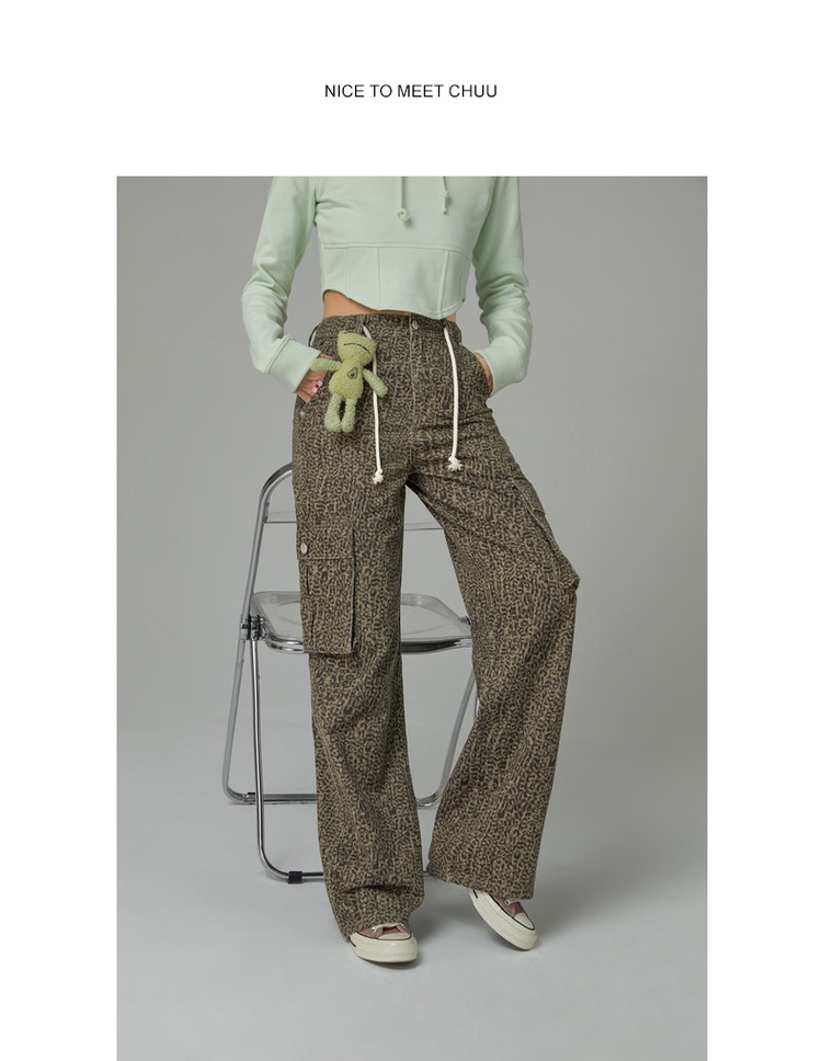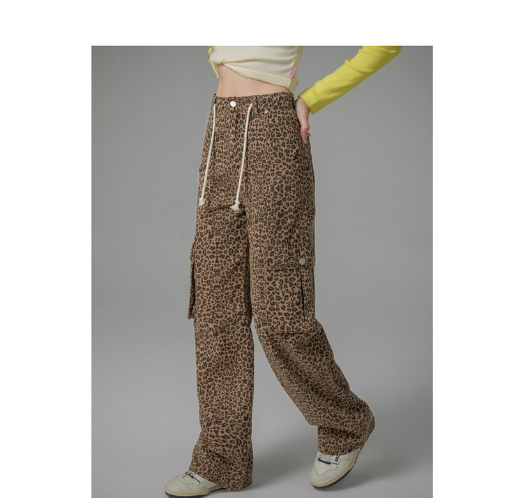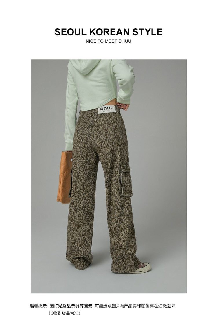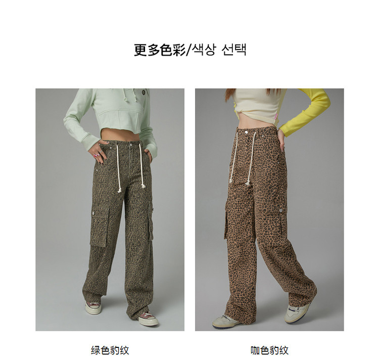 商品名称:豹纹牛仔裤女春秋时尚设计感个性宽松高腰直筒长裤 341587
