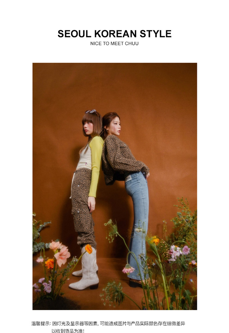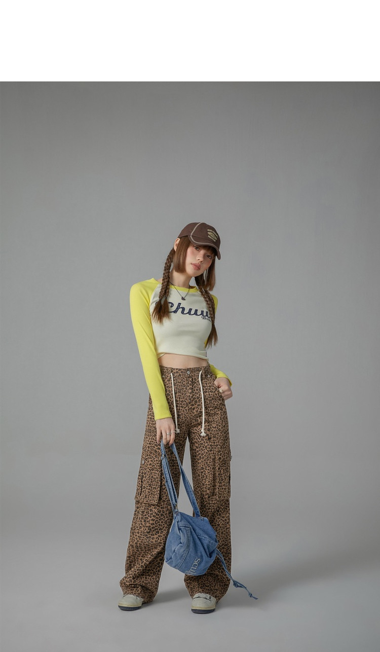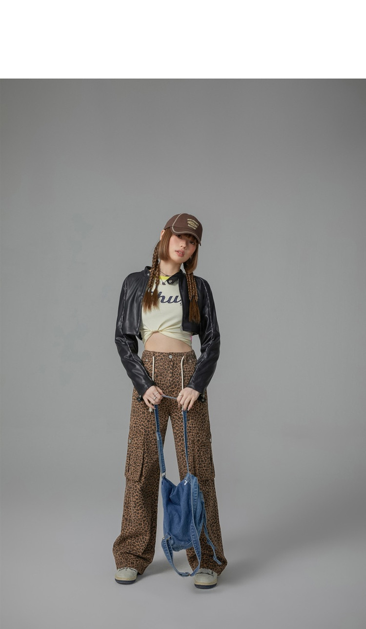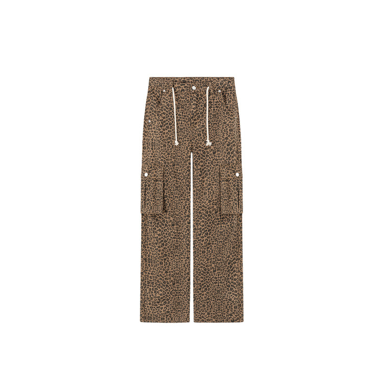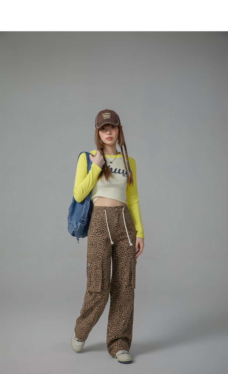 商品名称:豹纹牛仔裤女春秋时尚设计感个性宽松高腰直筒长裤 341587