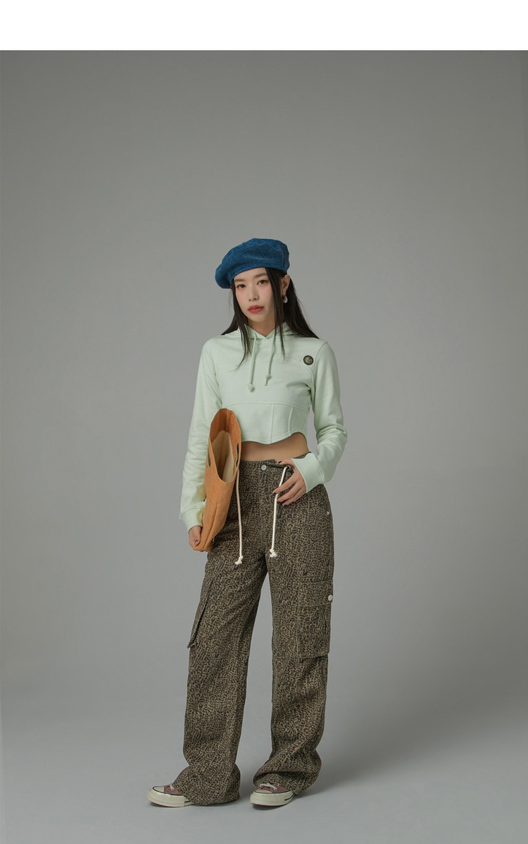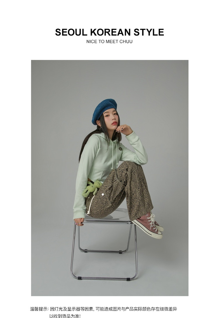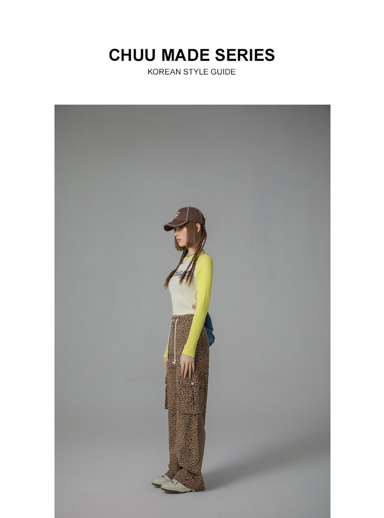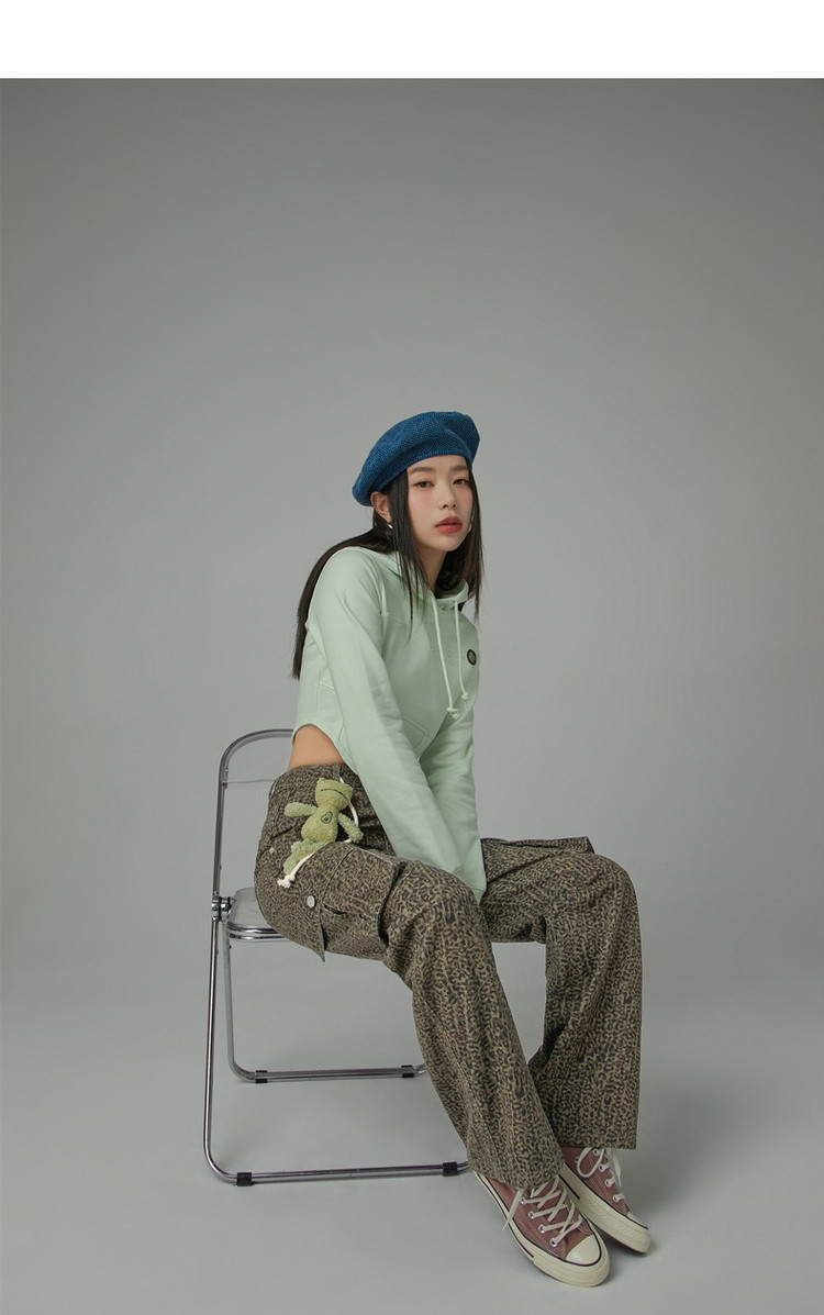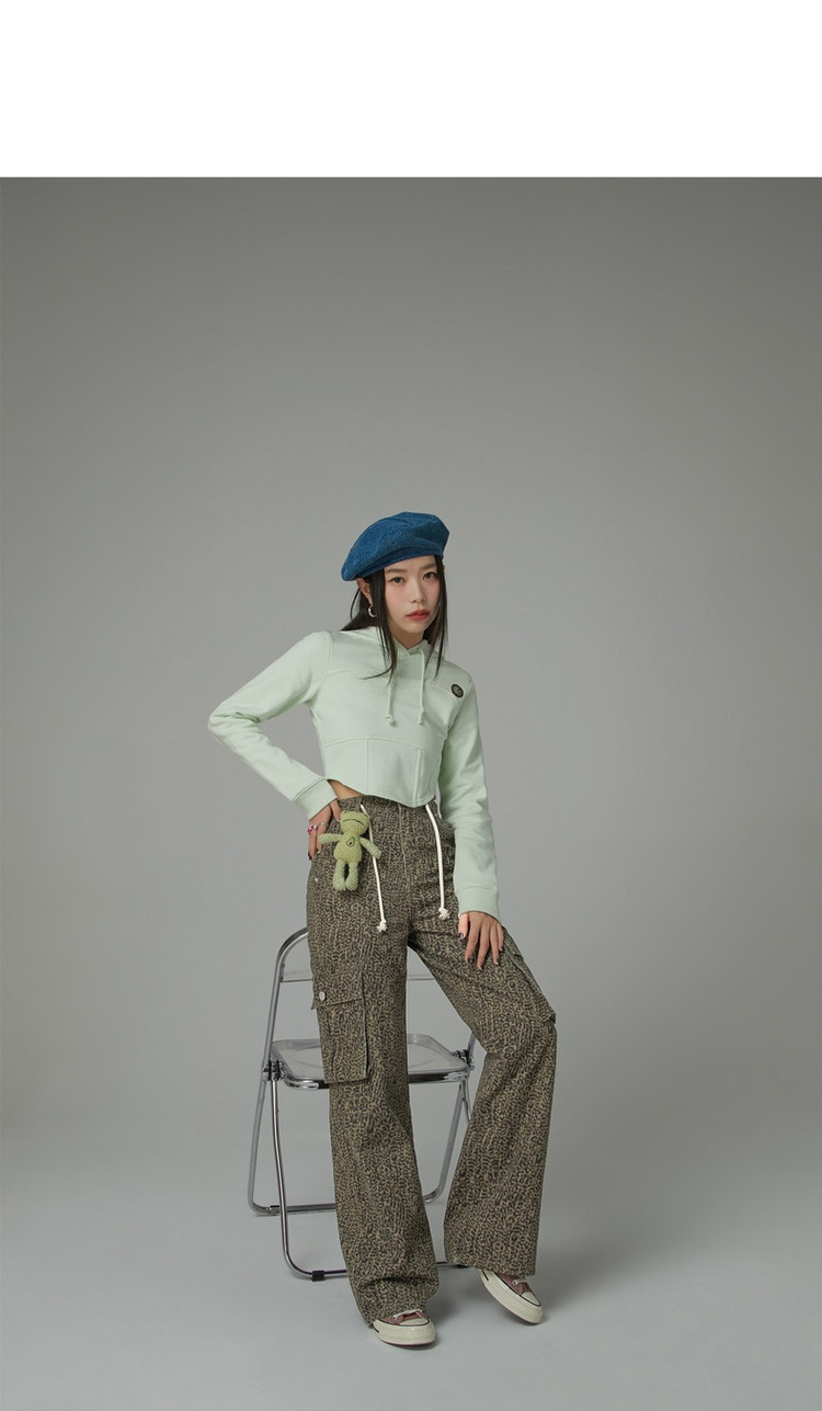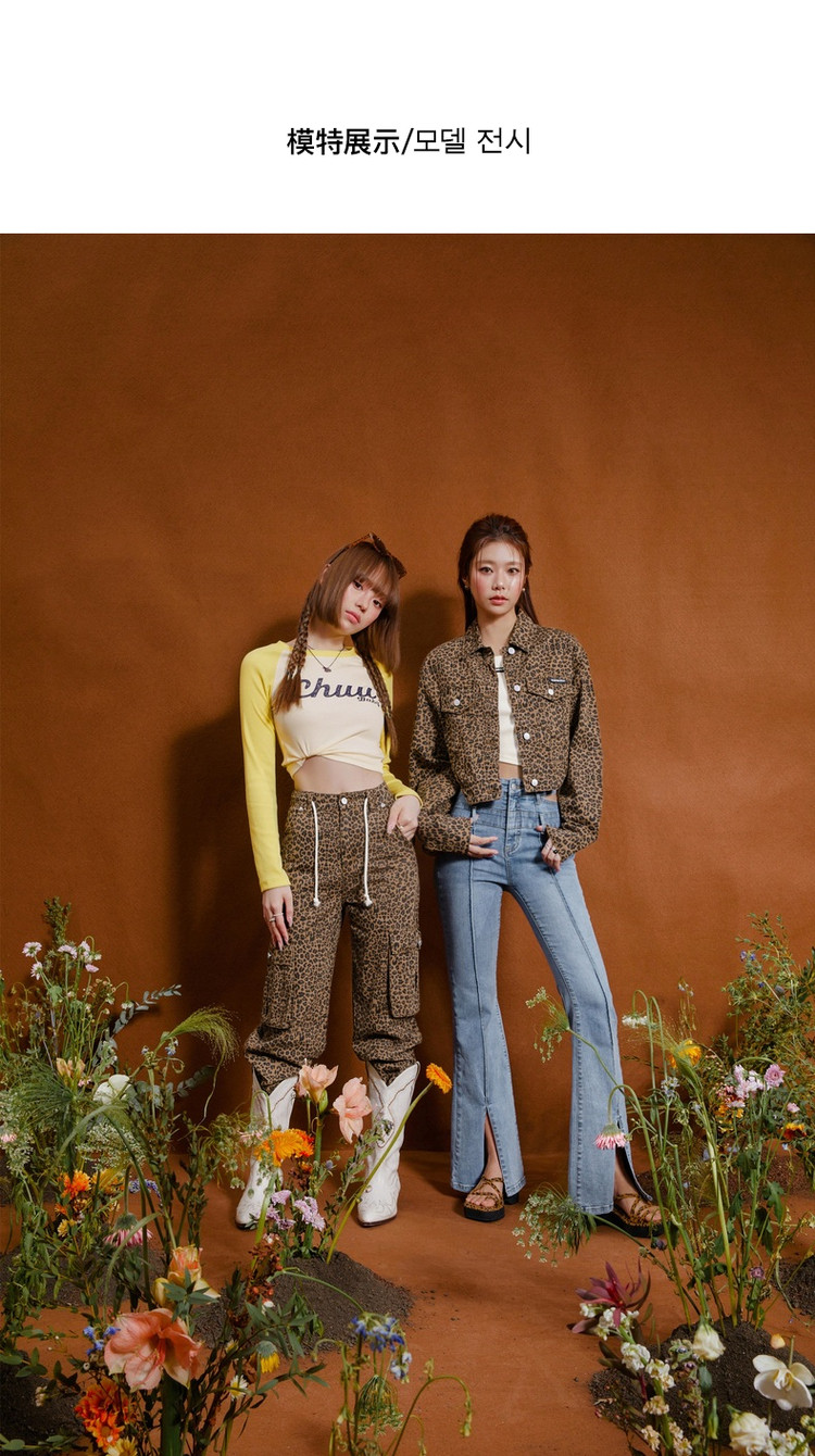 商品名称:豹纹牛仔裤女春秋时尚设计感个性宽松高腰直筒长裤 341587