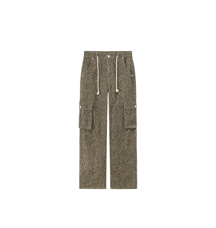 豹纹牛仔裤女春秋时尚设计感个性宽松高腰直筒长裤 341587