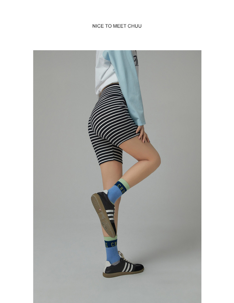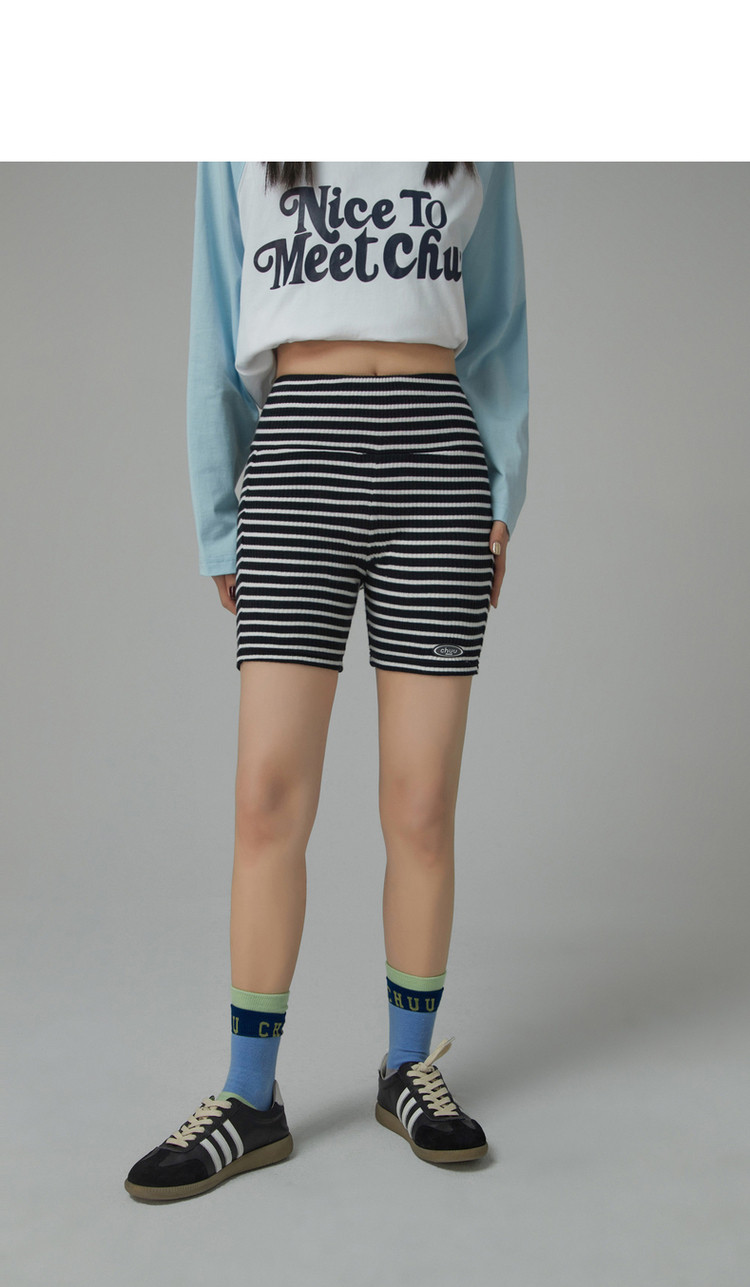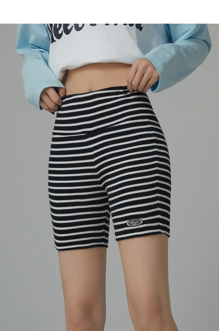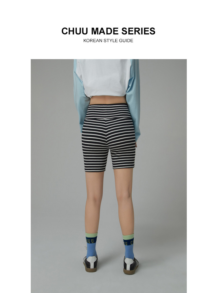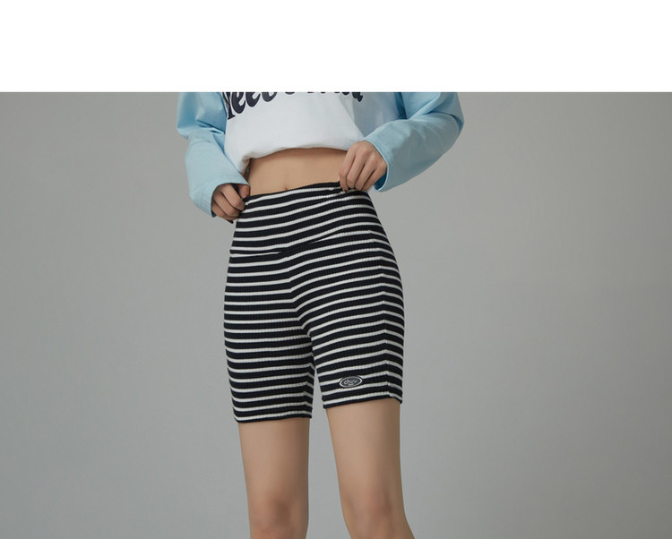 商品名称:条纹贴标打底裤女士秋高腰小个子显瘦外穿短裤子 677779