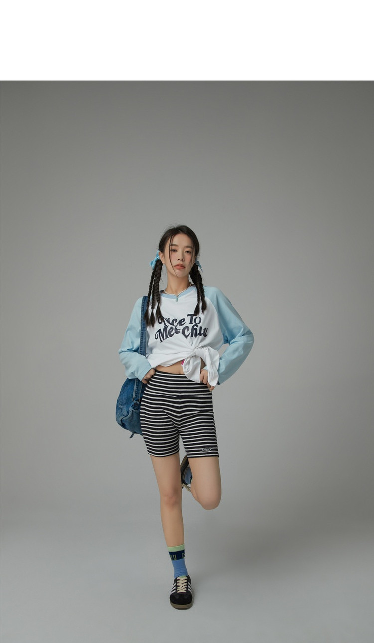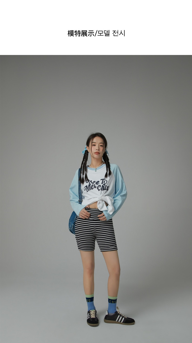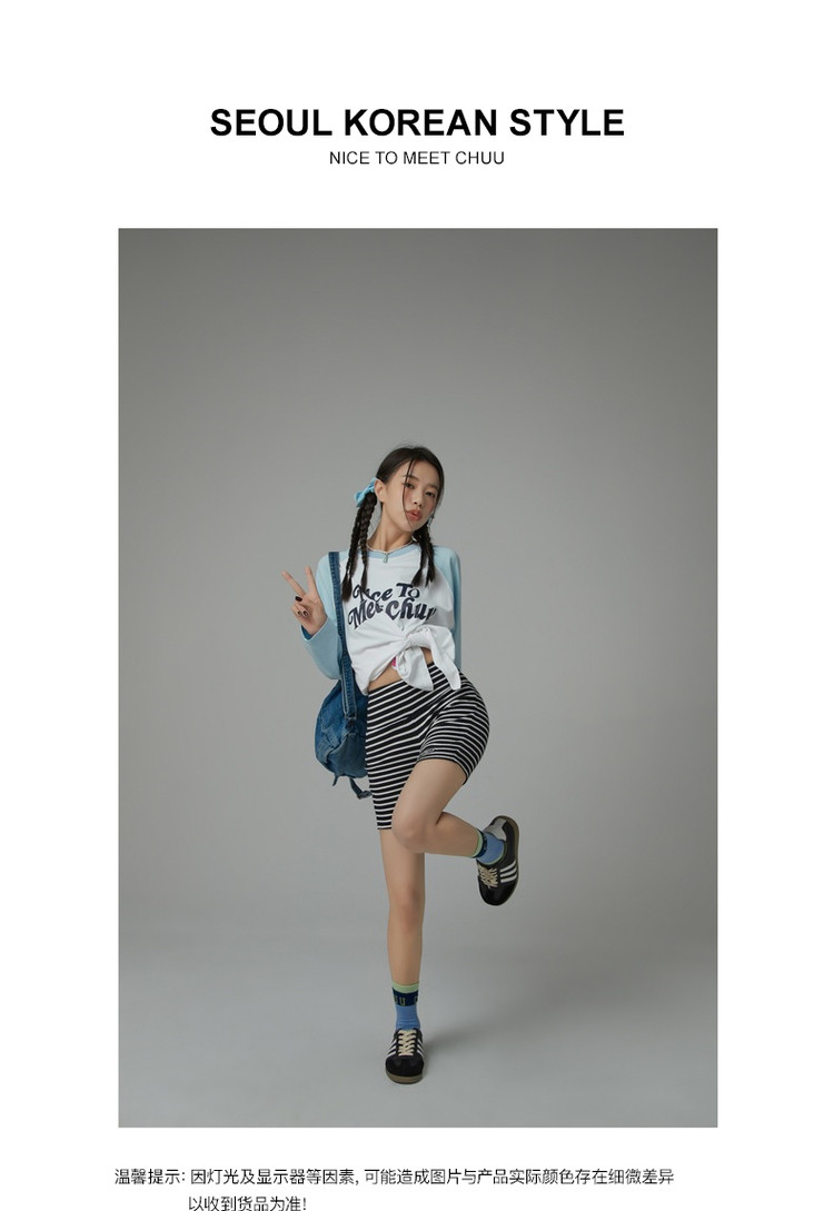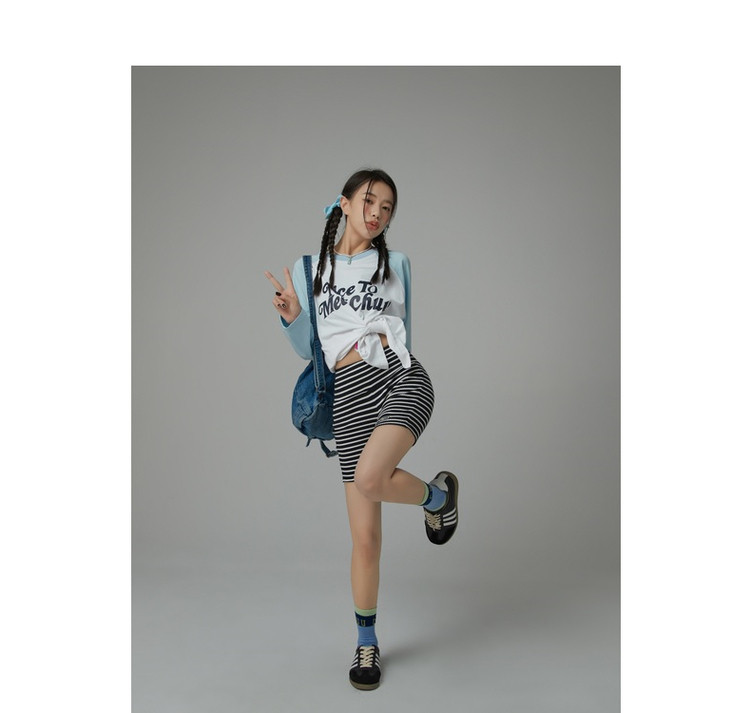 商品名称:条纹贴标打底裤女士秋高腰小个子显瘦外穿短裤子 677779