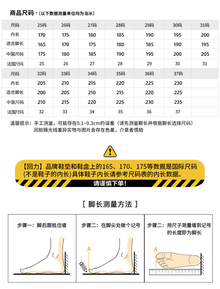 | 尺码 | 中国码 | 法国码 | 脚长(mm) | 鞋内长(mm) |