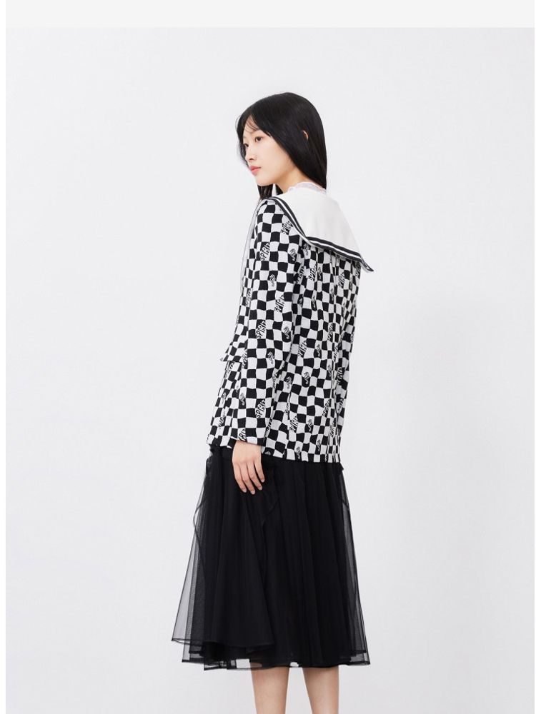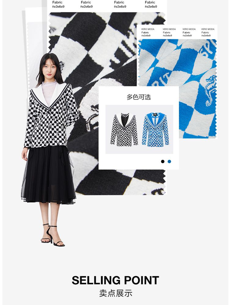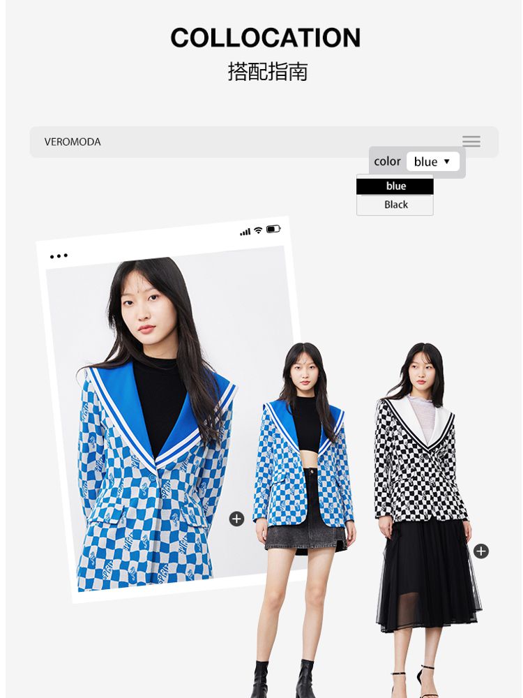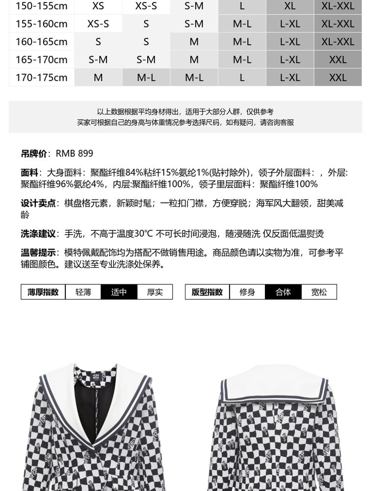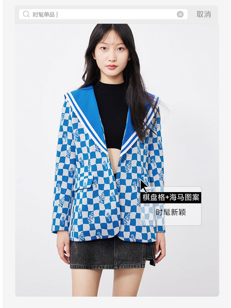 商品名称:【春秋款】棋盘格海军翻领夹克西装外套女 335761