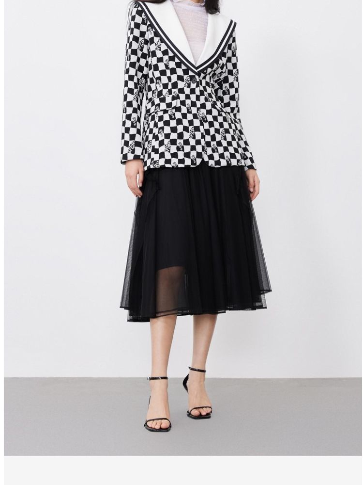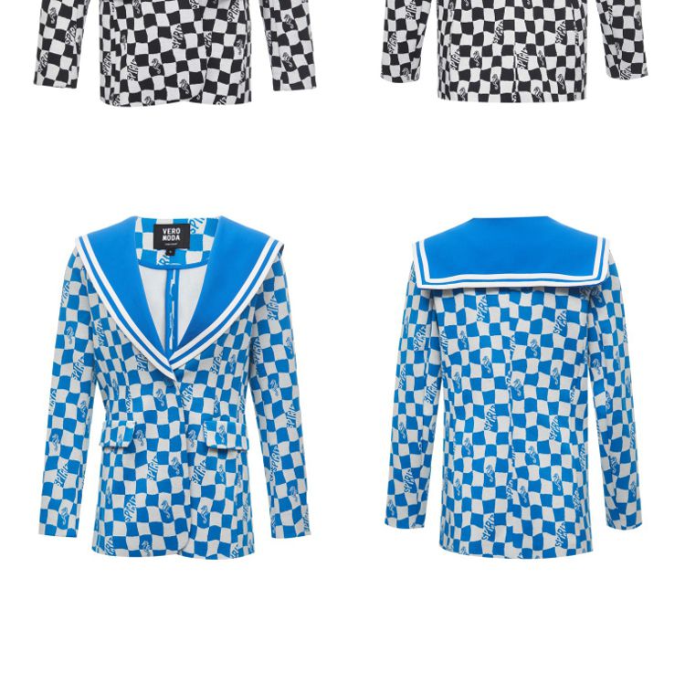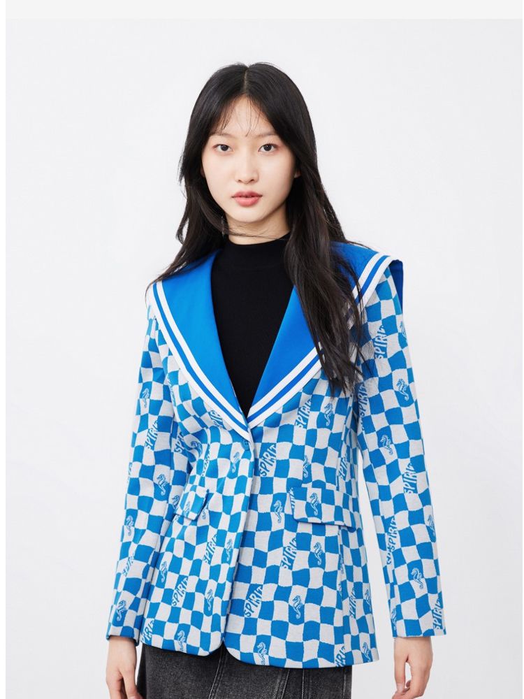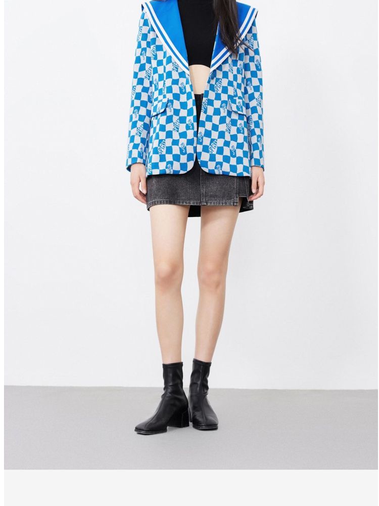 【春秋款】棋盘格海军翻领夹克西装外套女 335761