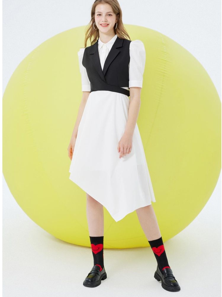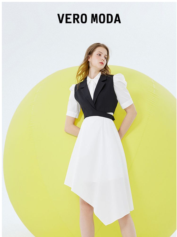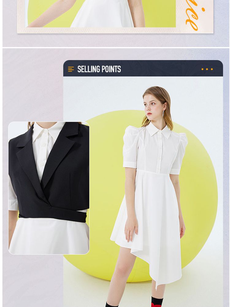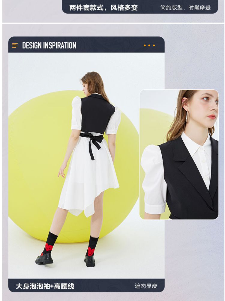 商品名称:【简约版型】春夏专柜同款高光系列衬衫马甲真两件连衣裙百搭时尚 366097