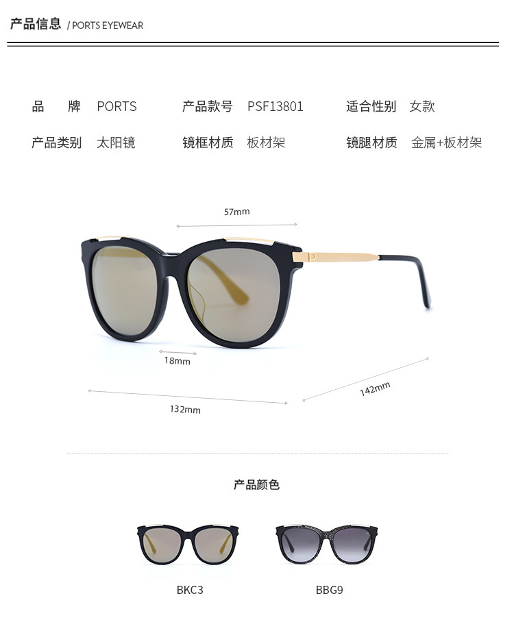 商品名称:PORTSPorts女款太阳镜PSF13801PSF13801 203018
