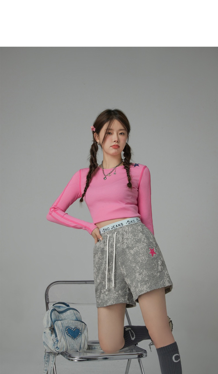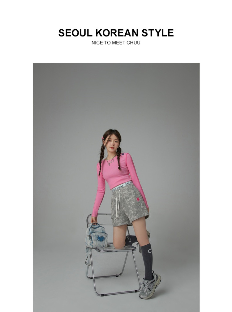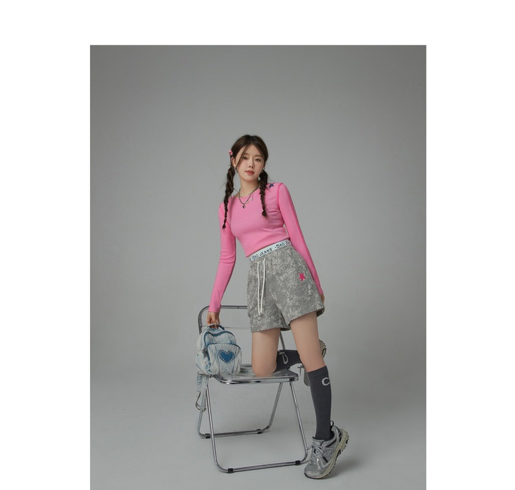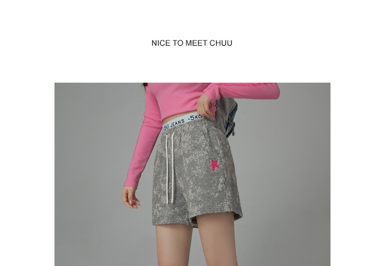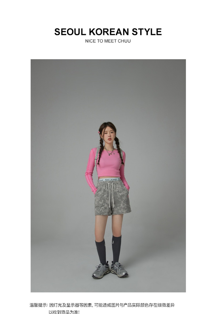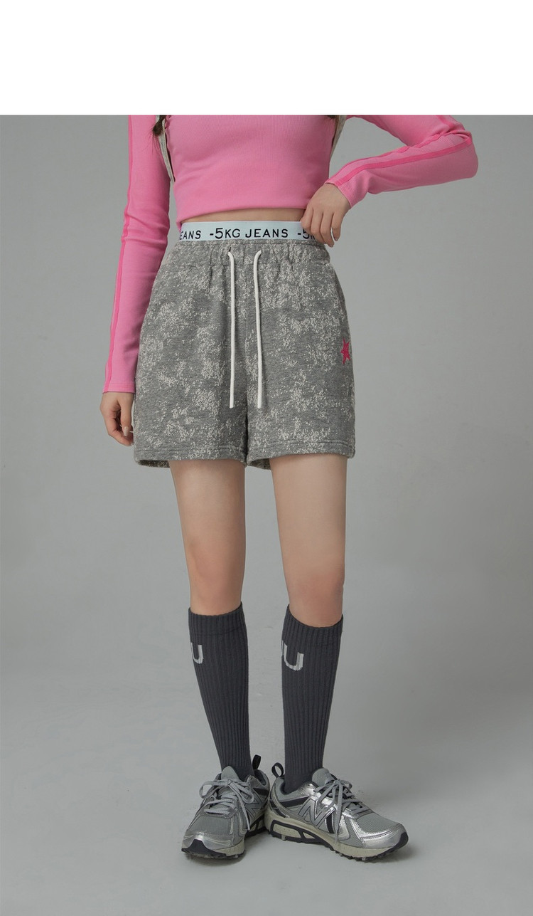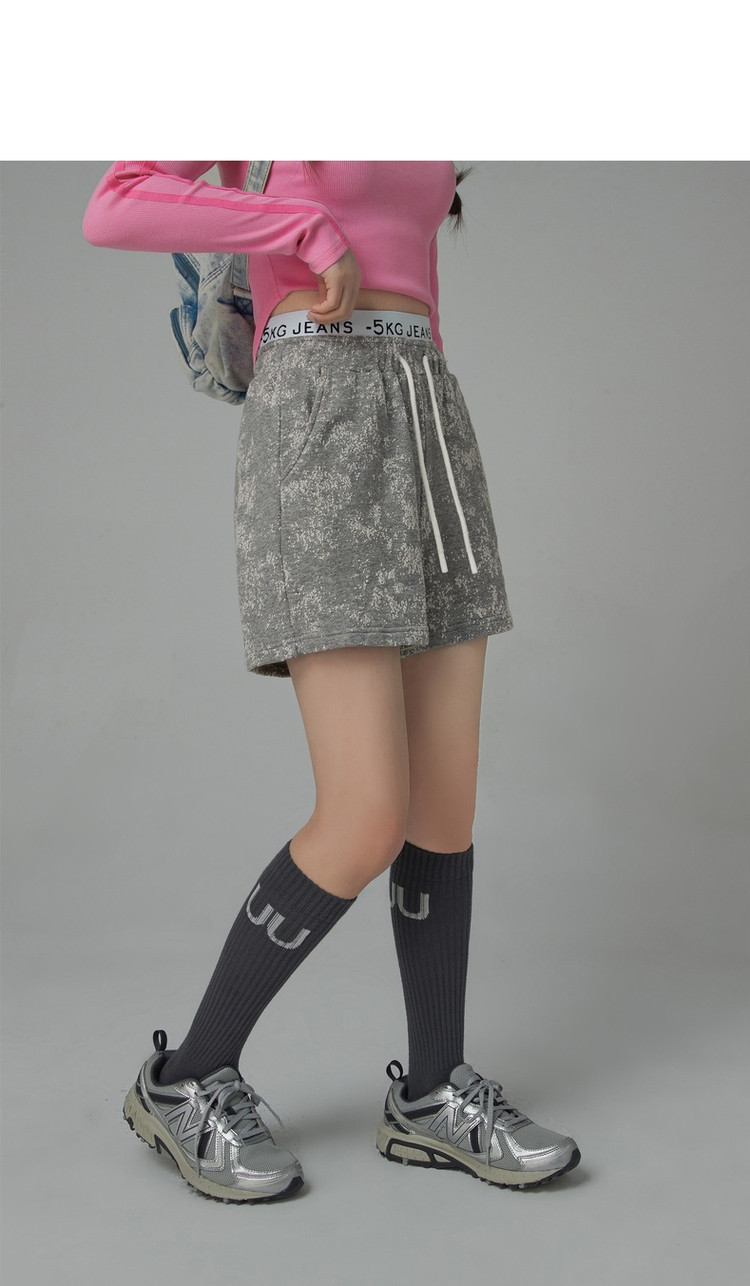 商品名称:直筒休闲裤女春秋灰色抽绳高腰运动短裤 774419