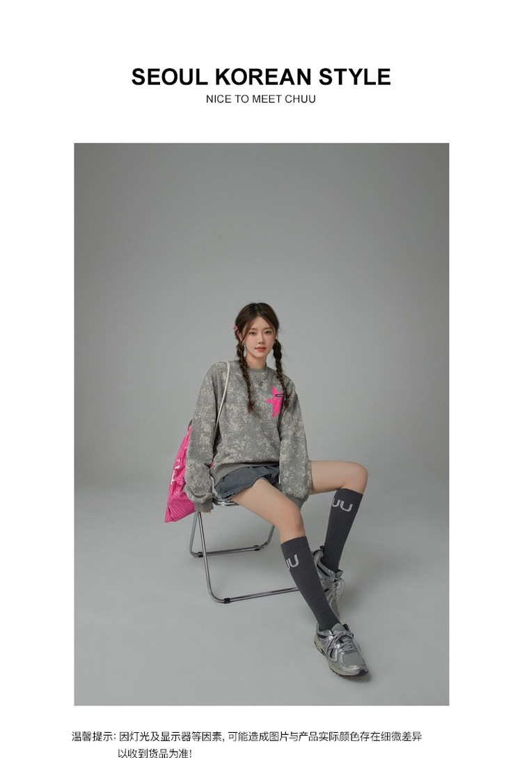 【赵小黎艺术家联名系列】圆领花朵提花气质针织衫 493521