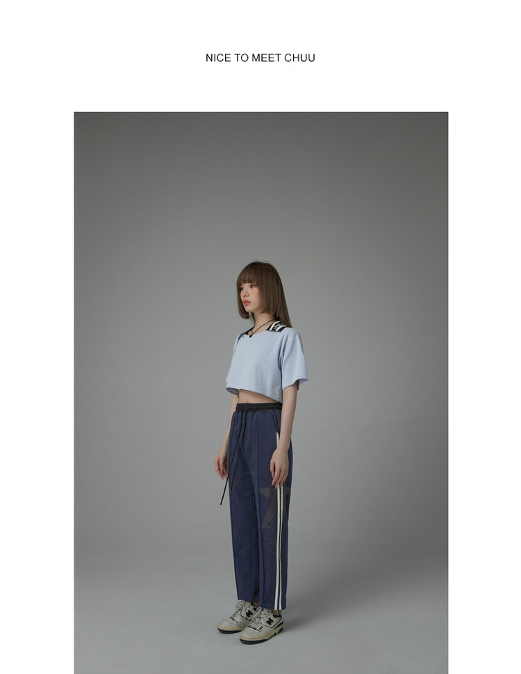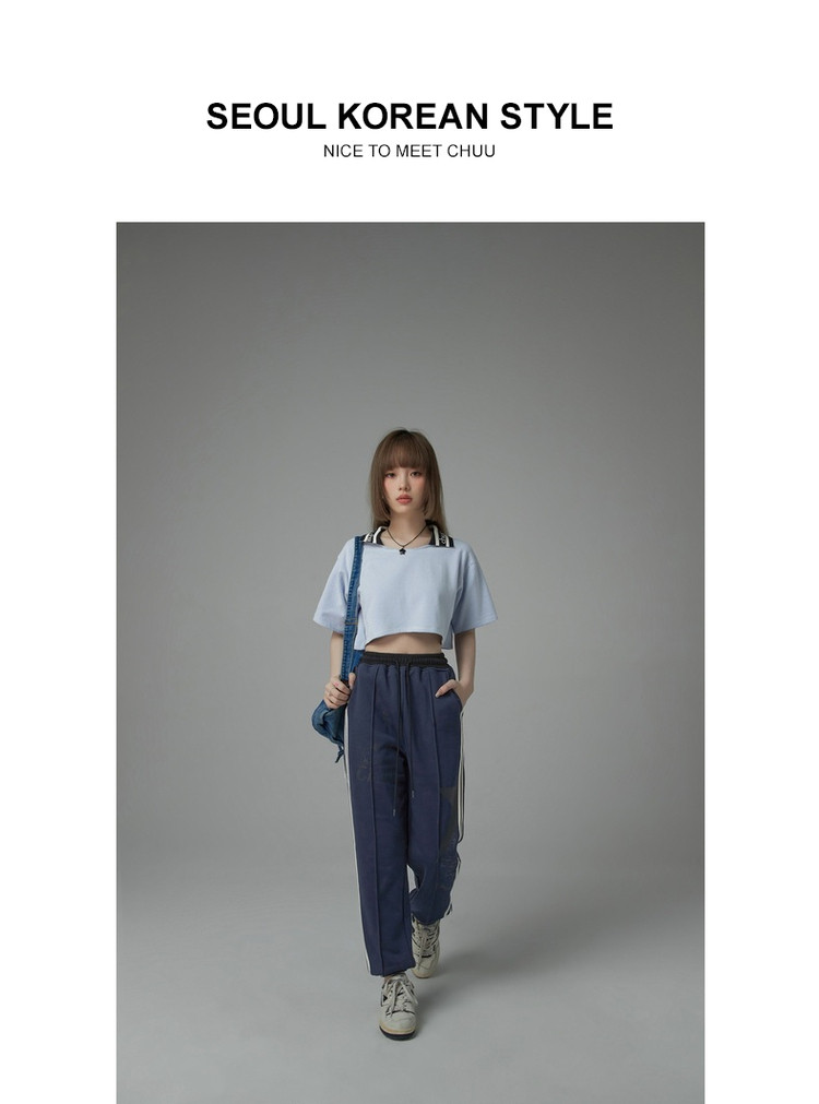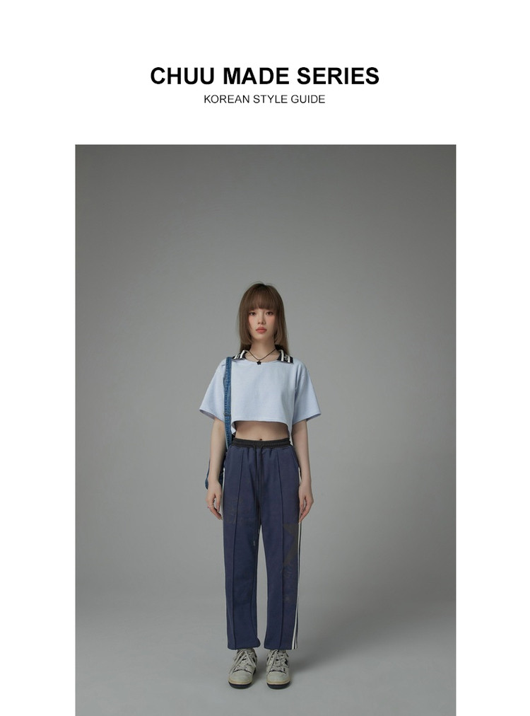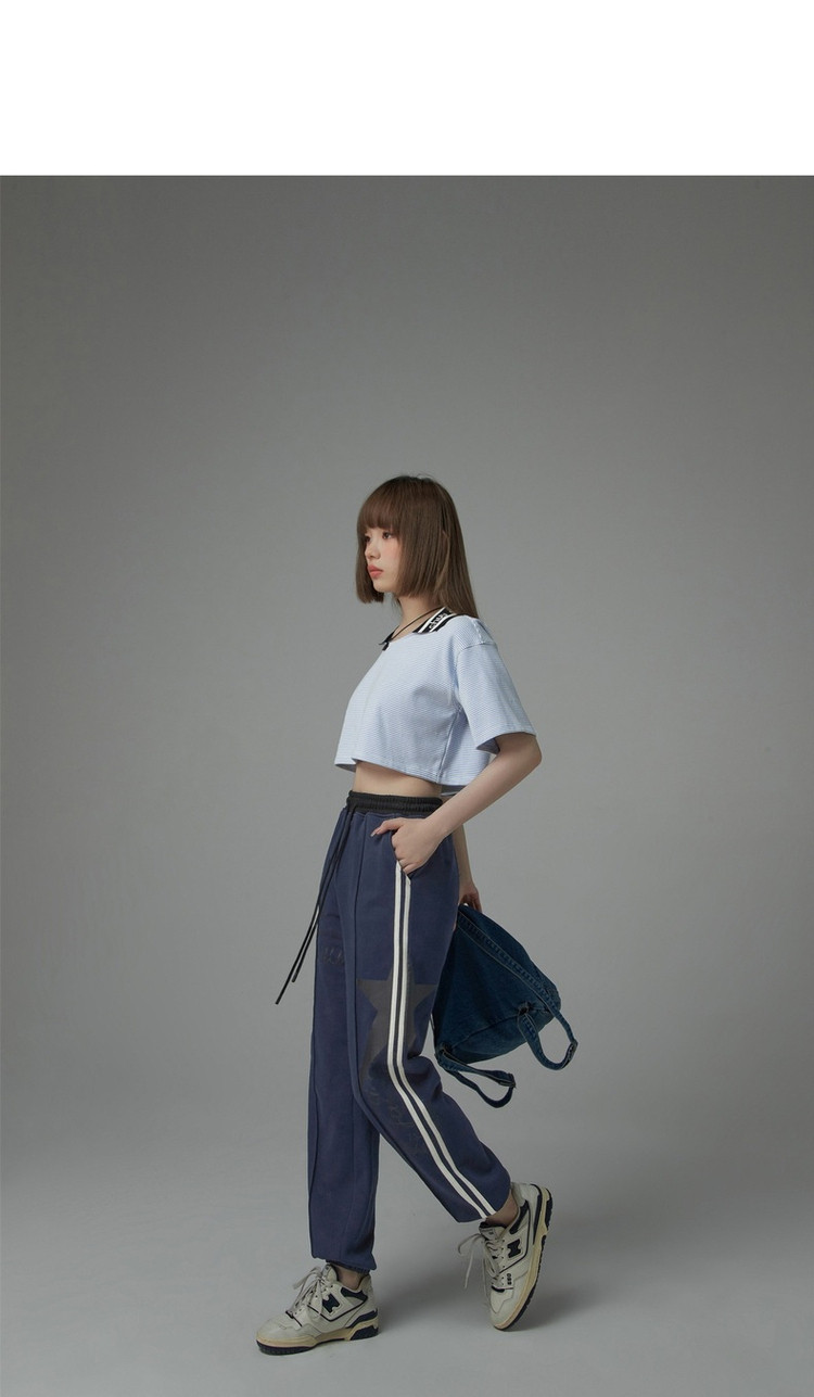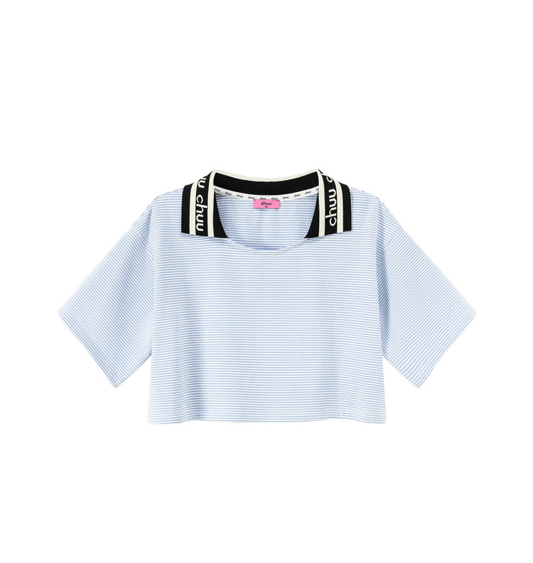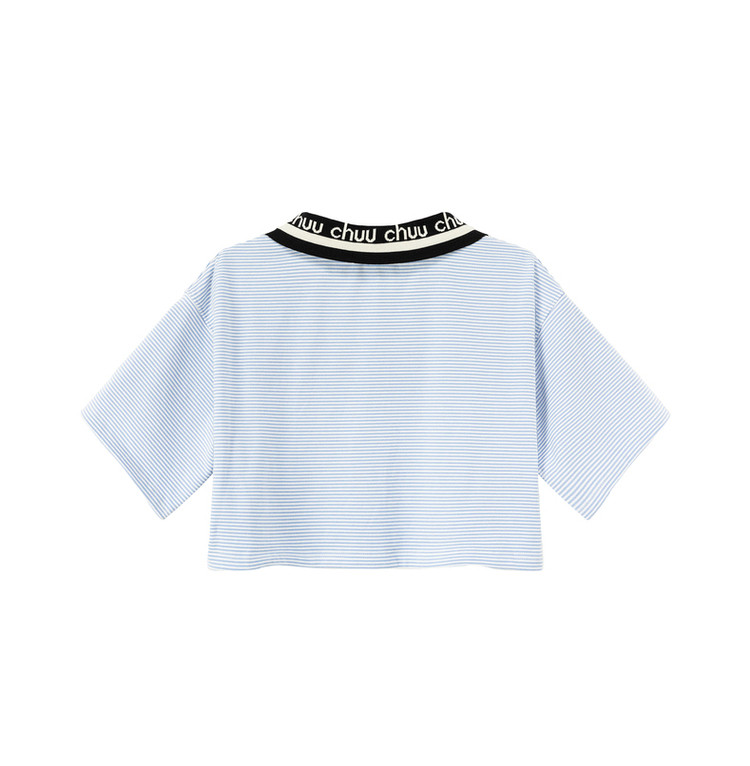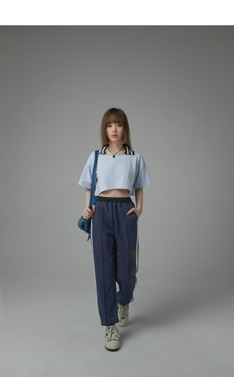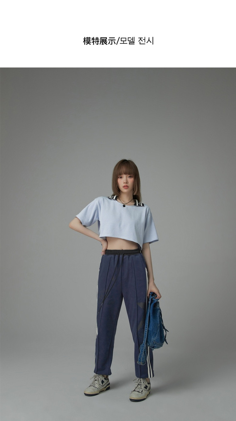 商品名称:翻领条纹t恤女秋少女感宽松短袖打底衫短款上衣 442643