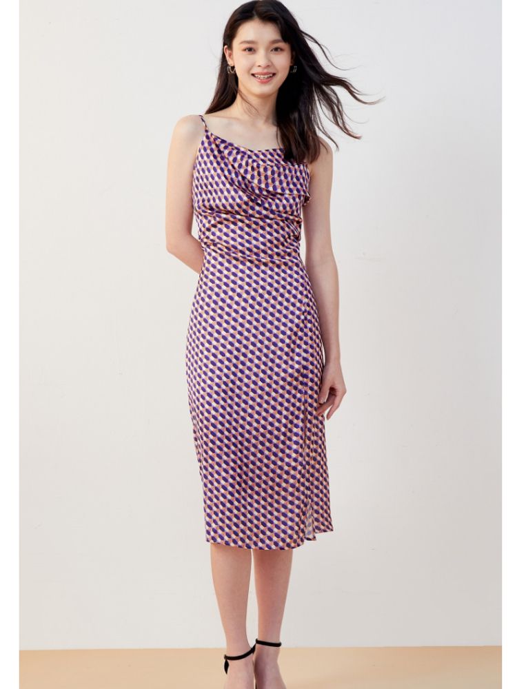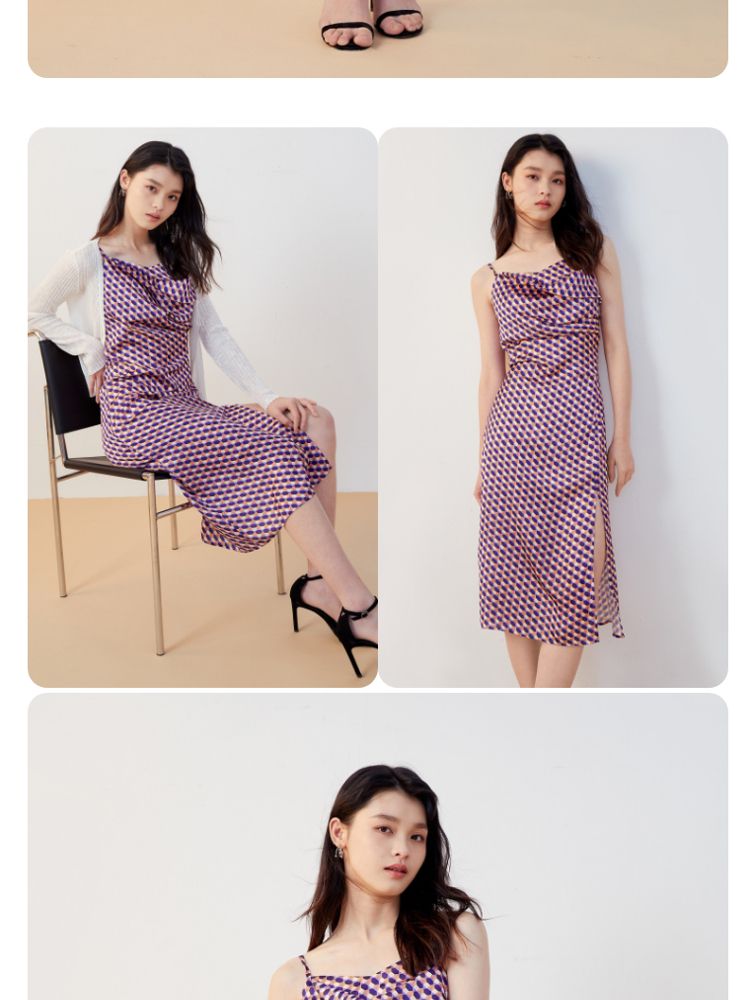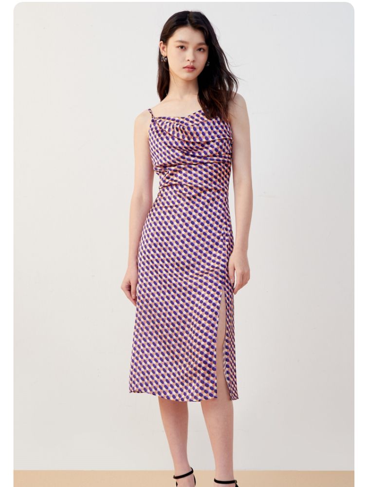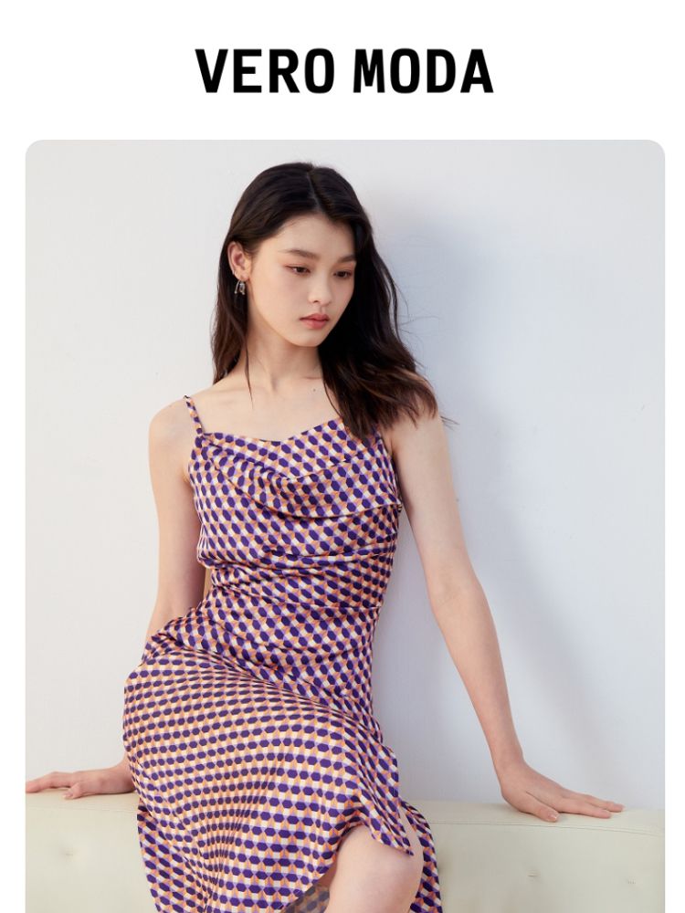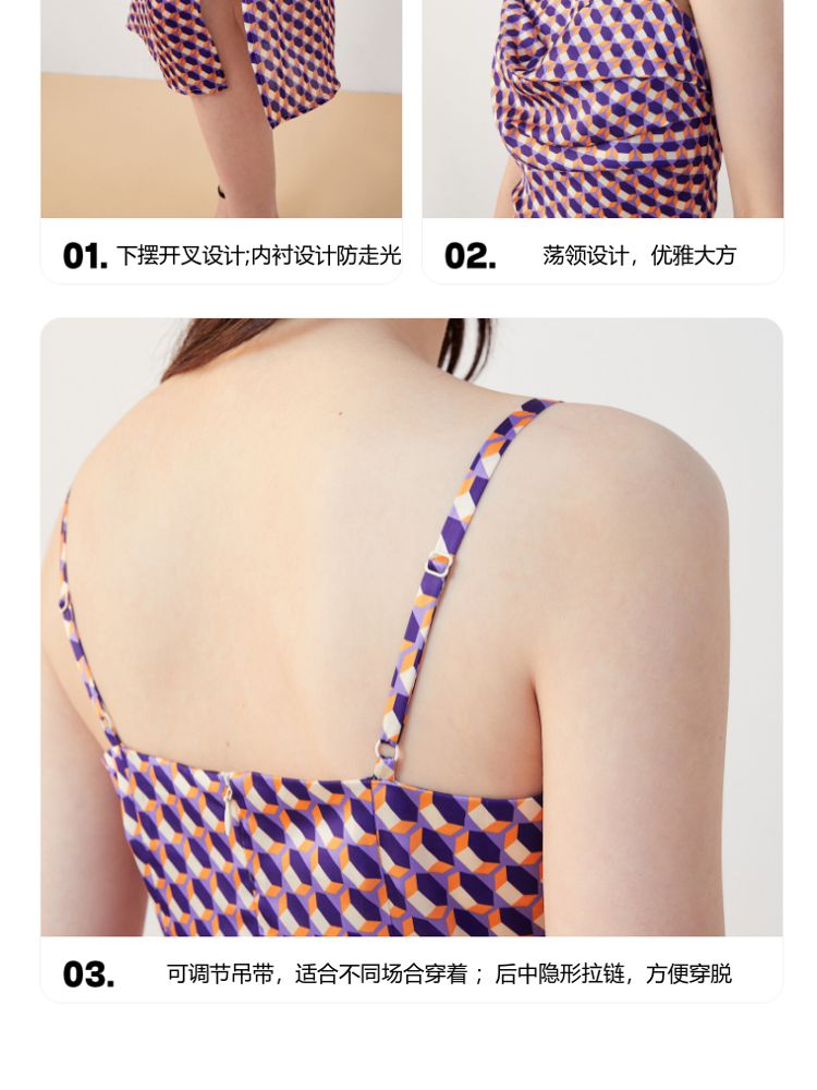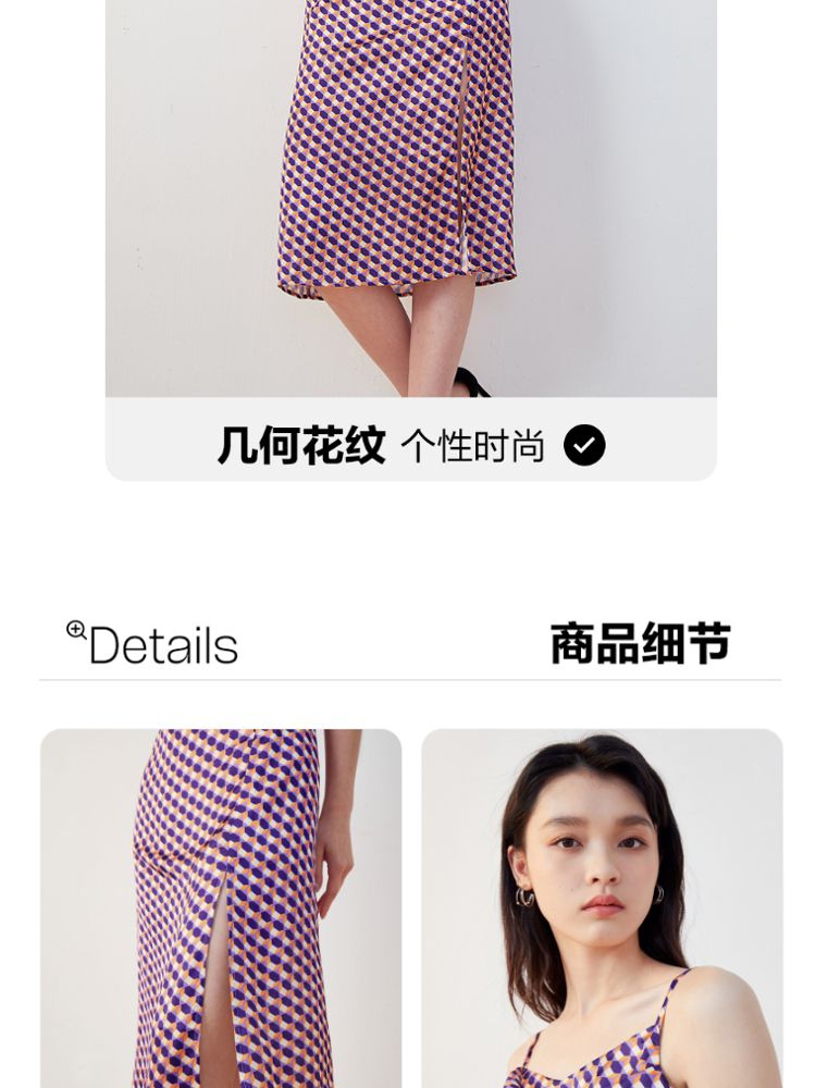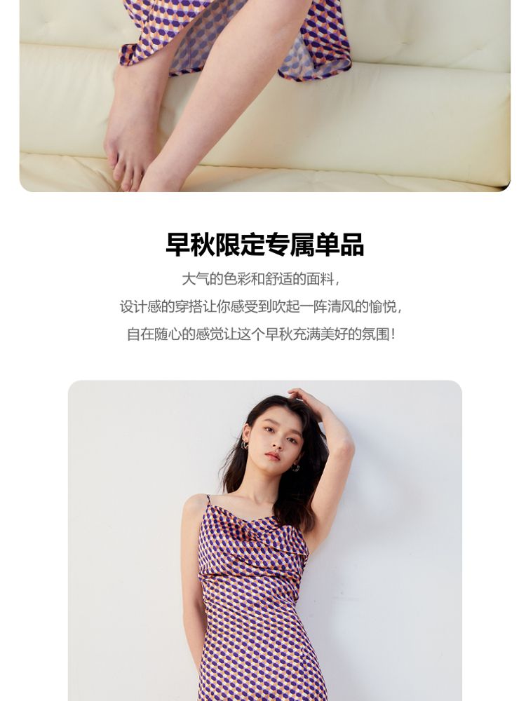 商品名称:【秋专柜款】印花吊带中长裙荡领优雅度假休闲连衣裙 158609