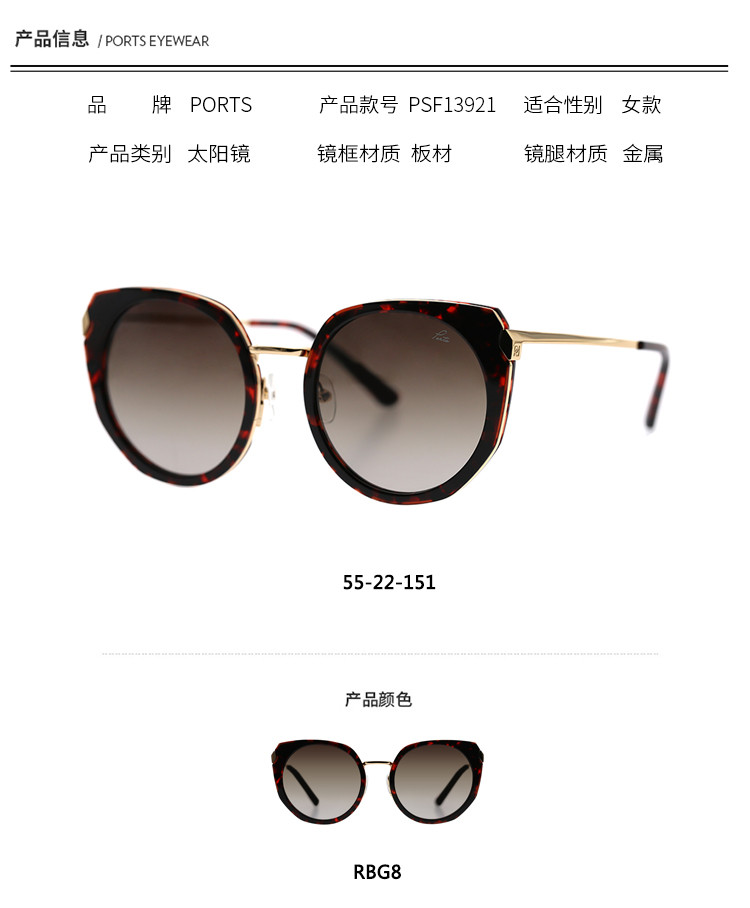 商品名称:PORTS女款个性时尚不规则猫眼框女士太阳镜PSF13921 847562