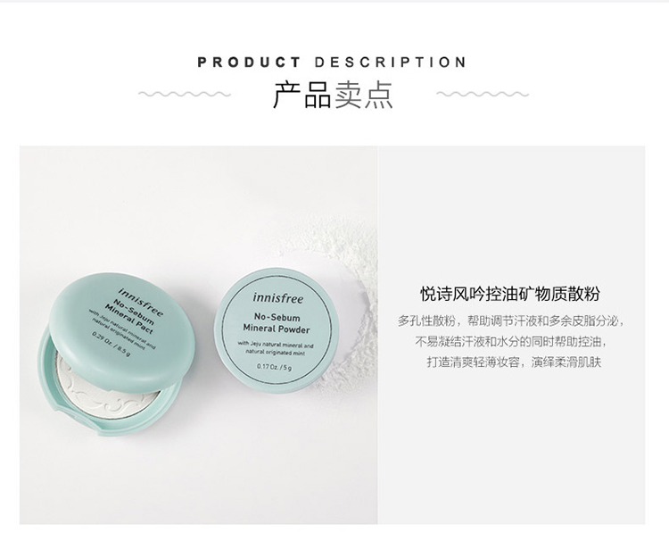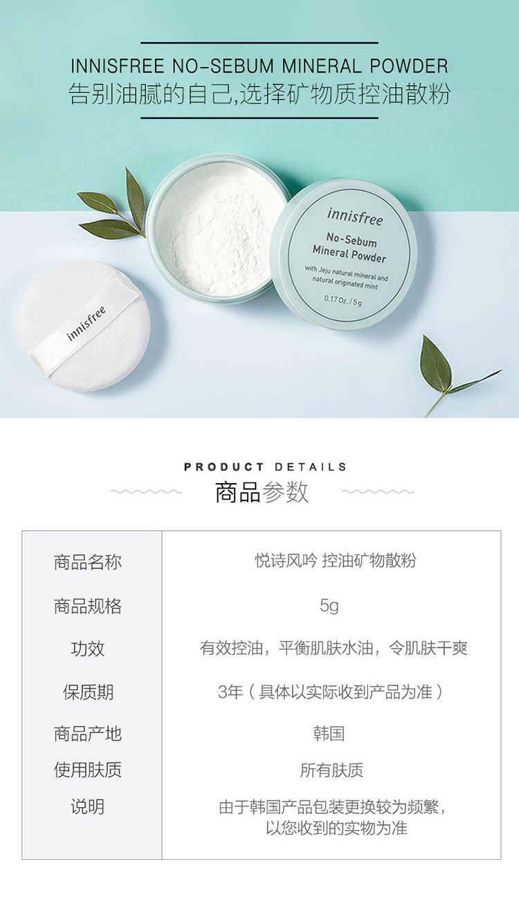 商品名称:innisfree/悦诗风吟 新版薄荷矿物质定妆散粉5g