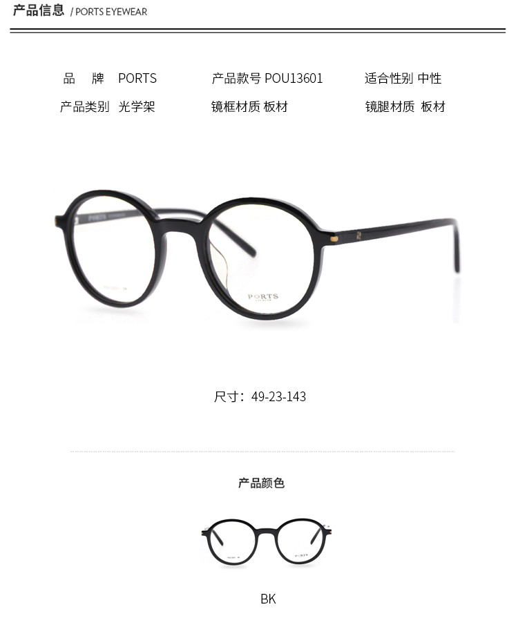 商品名称:PORTS中性款复古中性款潮流全框圆框光学架POU13601 379018