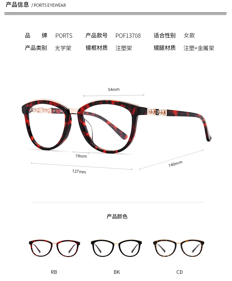 商品名称:Ports眼镜女款个性简约板材眼镜架光学架POF13708 355018