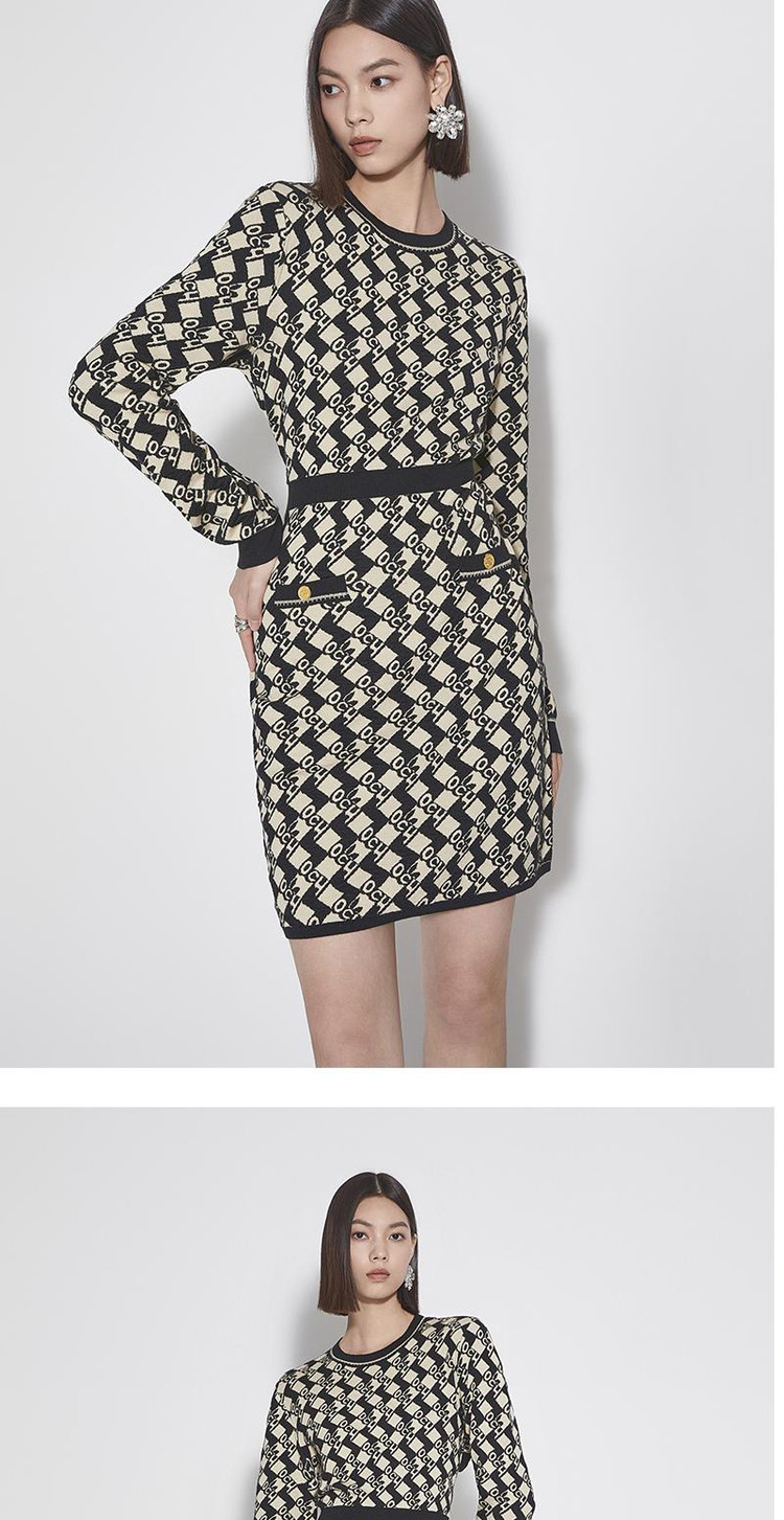 春装 撞色显瘦小个子小香风提花毛织连衣裙 184783