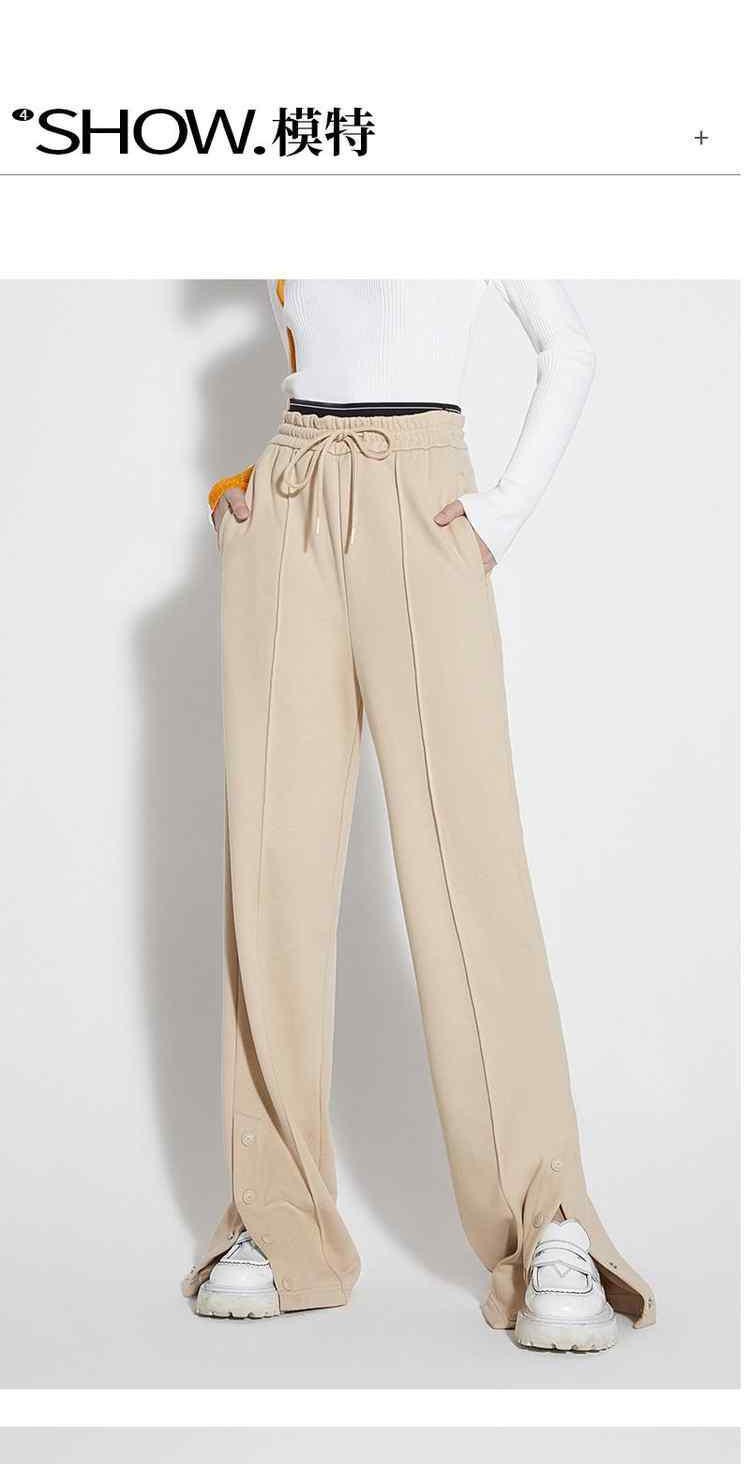 商品名称:春装 阔腿直筒拼接运动风纯棉长裤女 091727