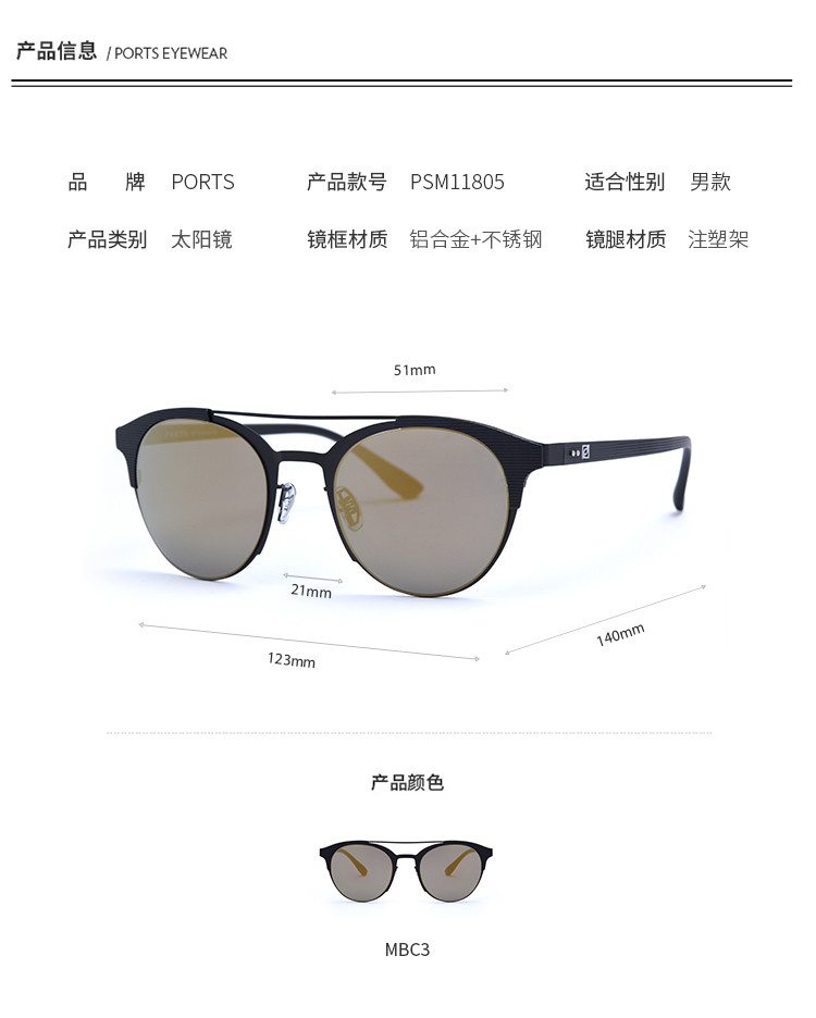 商品名称:PORTSPorts眼镜男款太阳镜PSM11805PSM11805 577162
