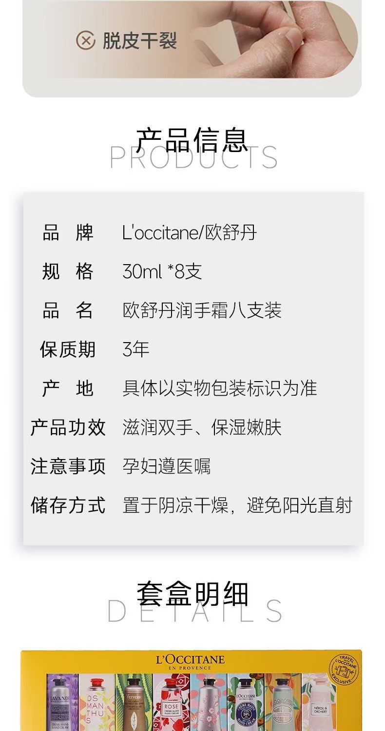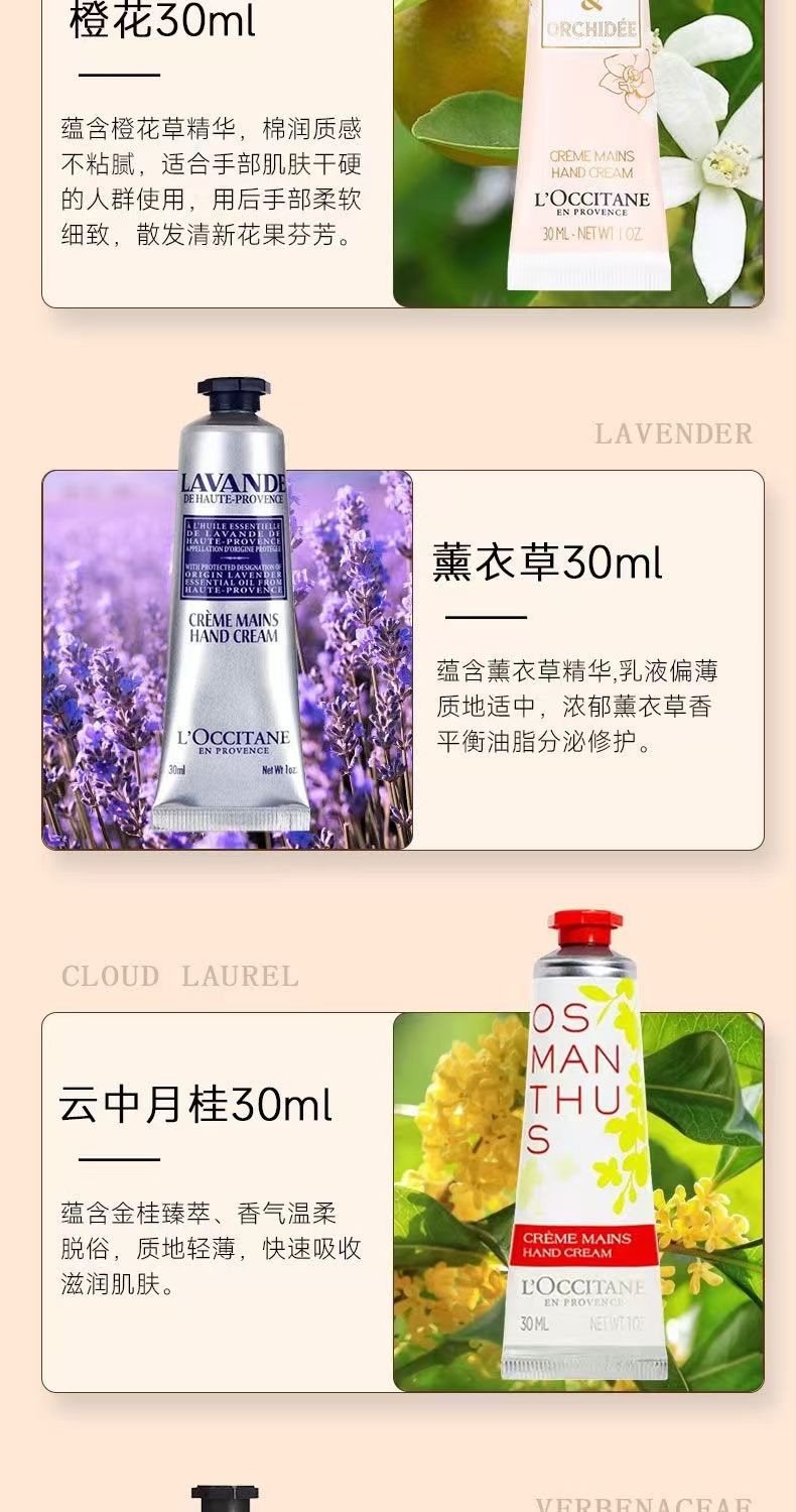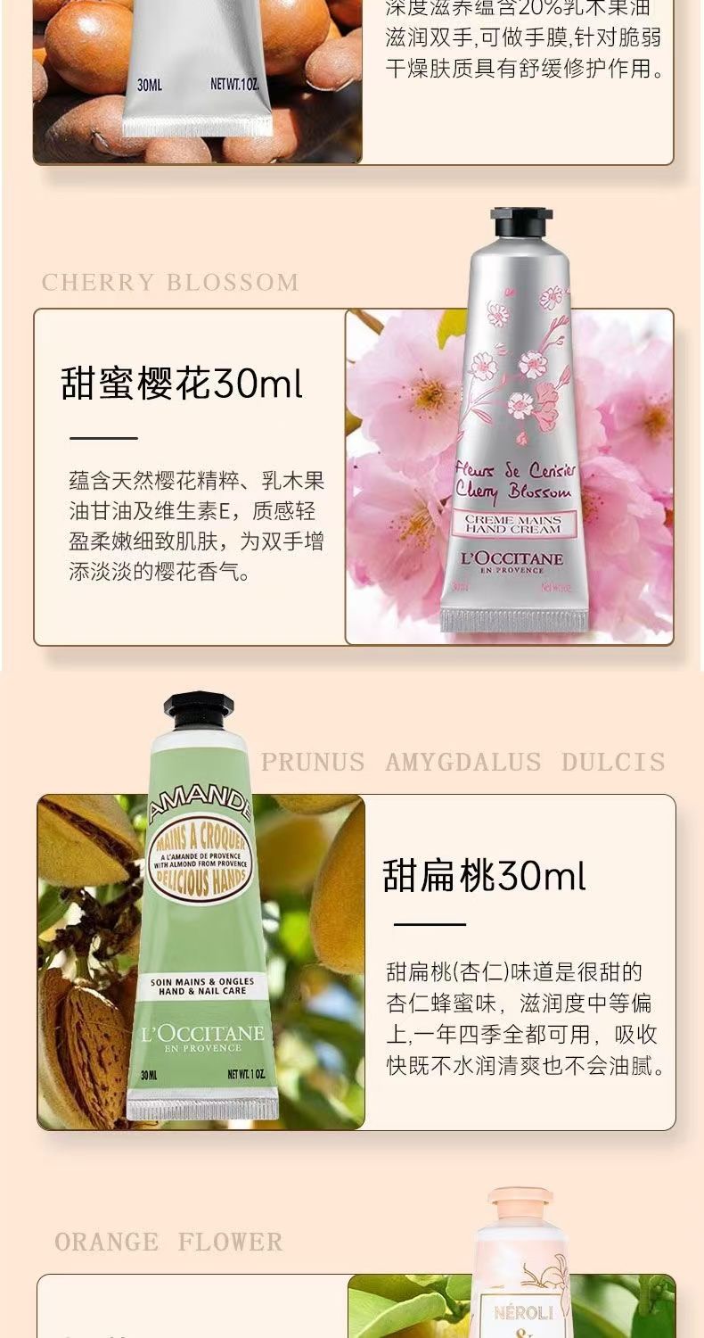 商品名称:欧舒丹 护手霜八件套装伴手礼(乳木果,樱花,马鞭草,桂花玫瑰,甜扁桃,橙花,薰衣草)