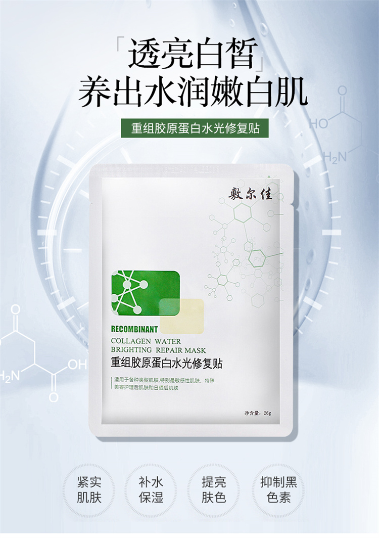 商品名称:敷尔佳 绿膜胶原蛋白水光面膜 5片/盒 修护肌肤补水保湿水润光泽