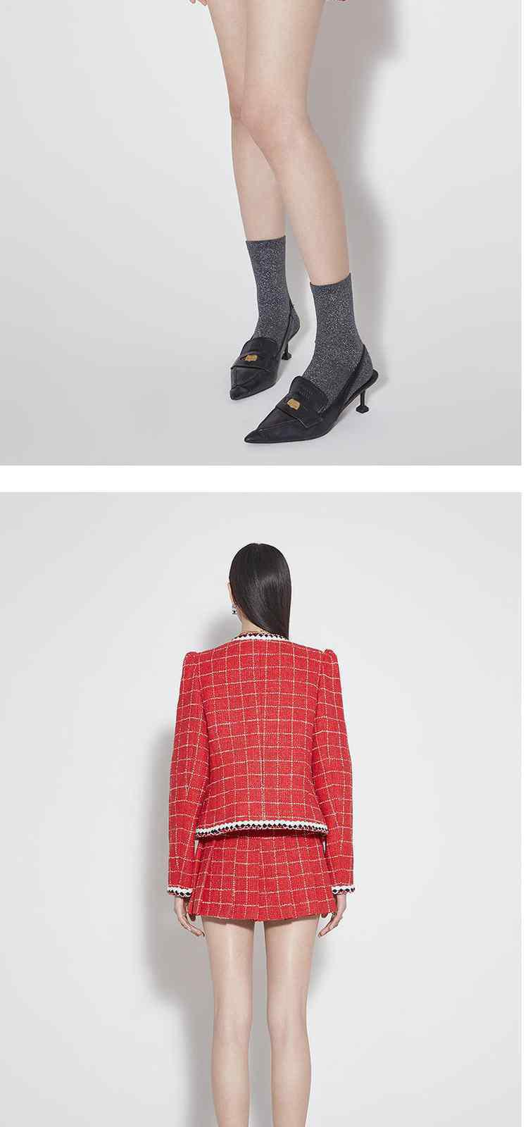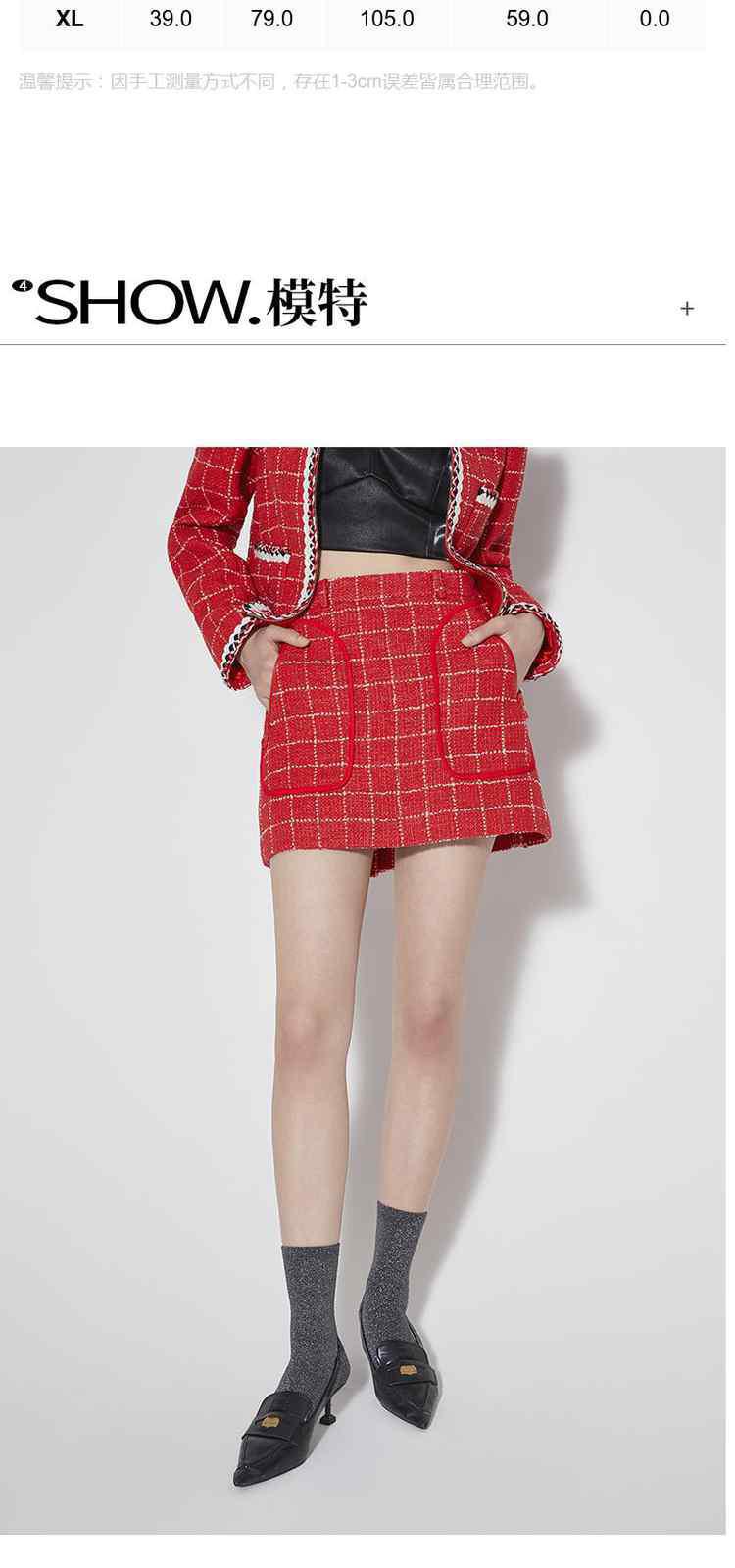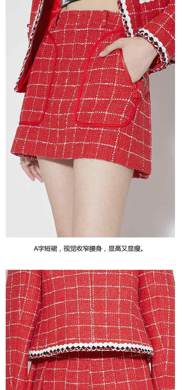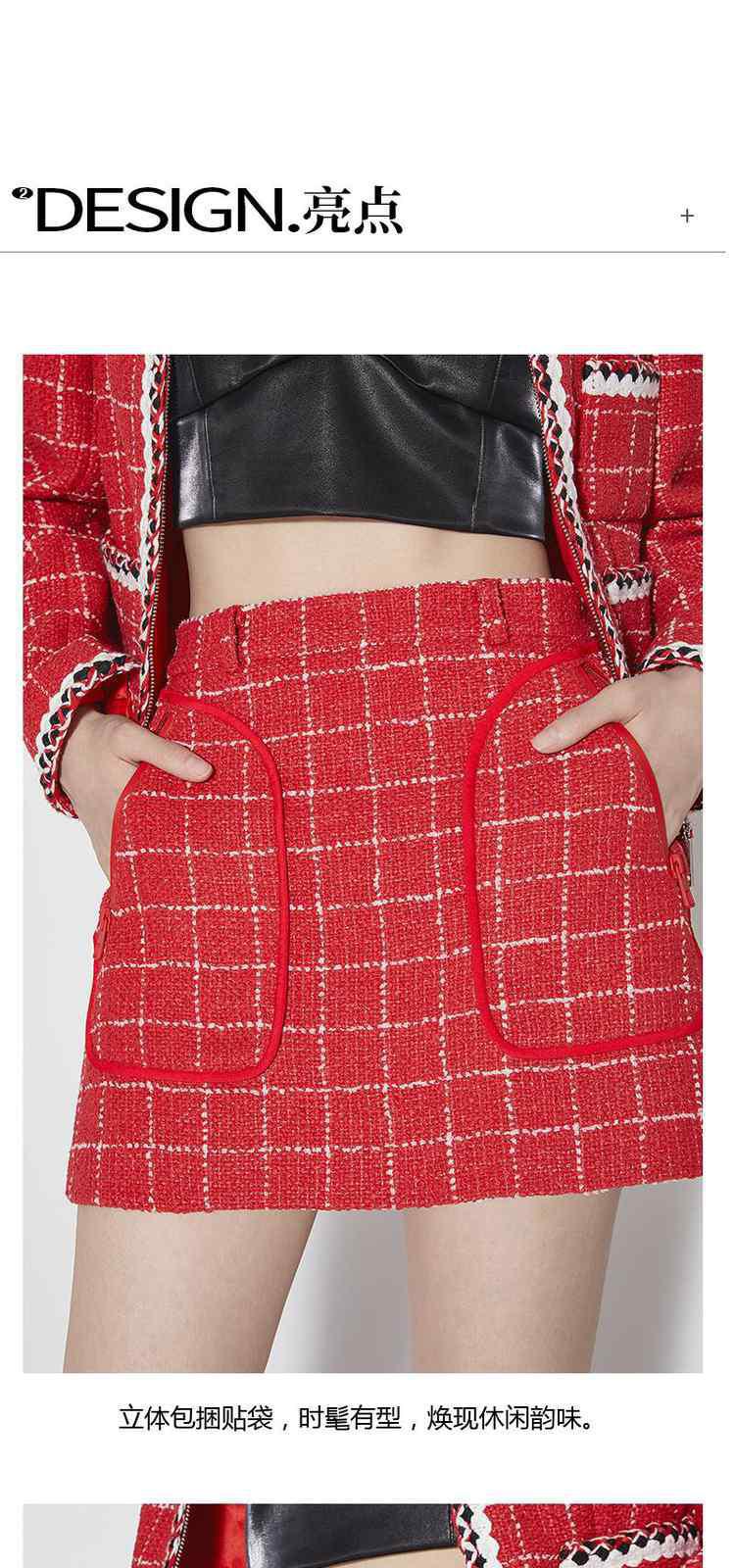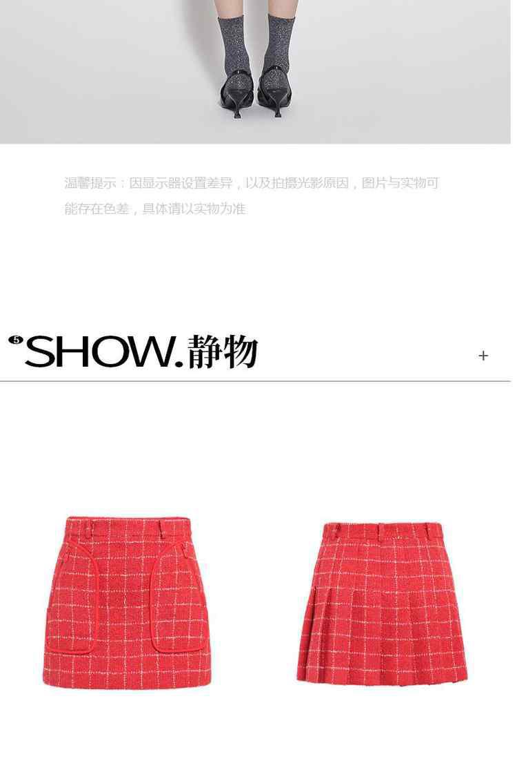 商品名称:春装排褶设计感新中式小香风格子半身裙 090895