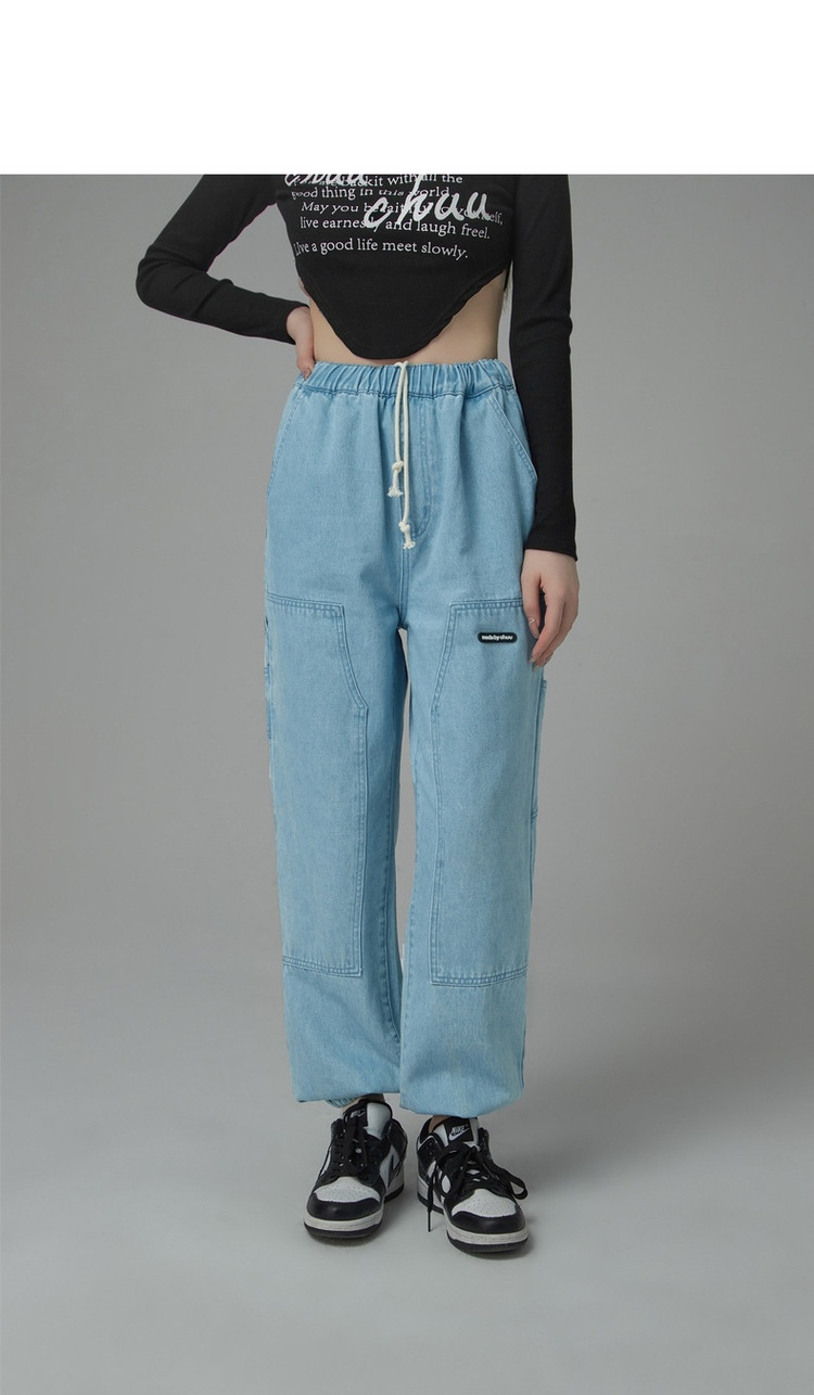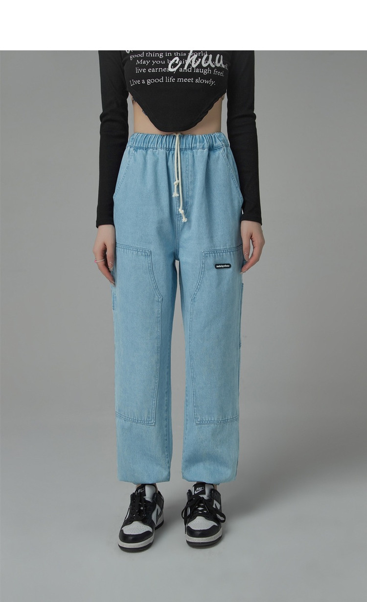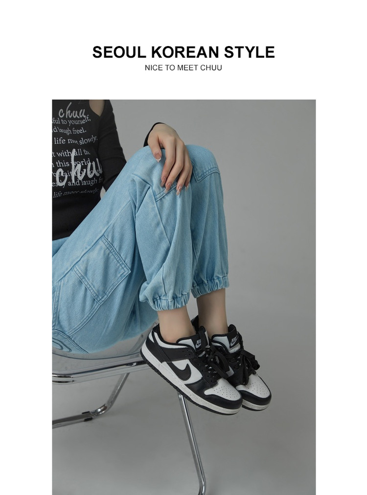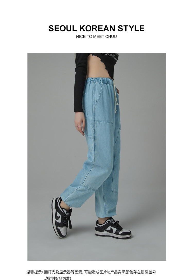 商品名称:束脚休闲裤女春秋松紧抽绳高腰直筒长裤哈伦裤子 541971