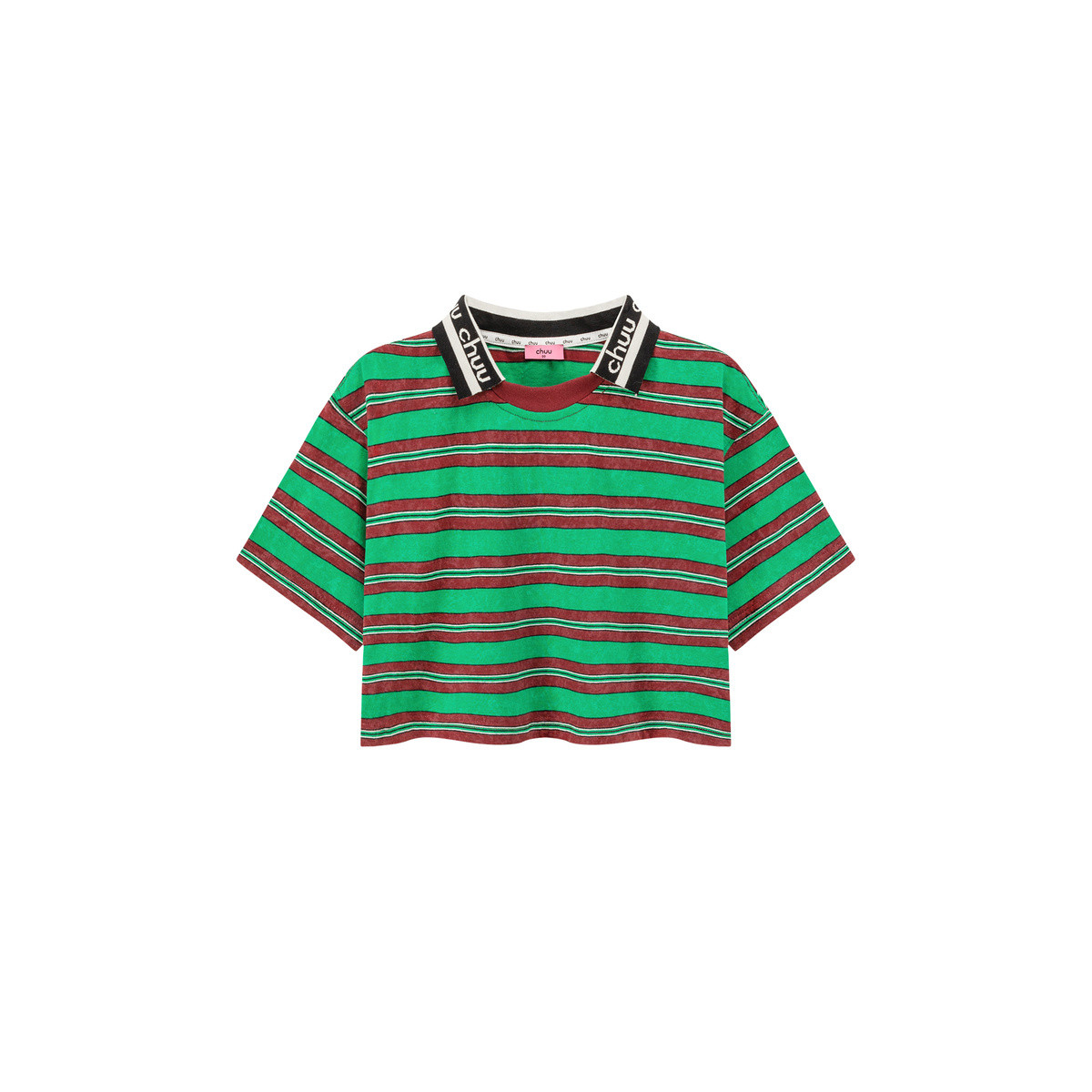 商品名称:条纹撞色T恤女秋字母翻领潮流短袖套头上衣 517715