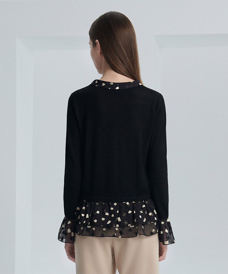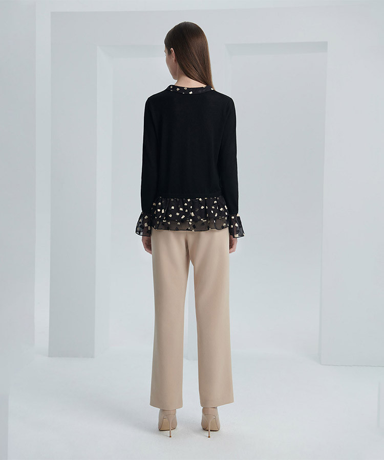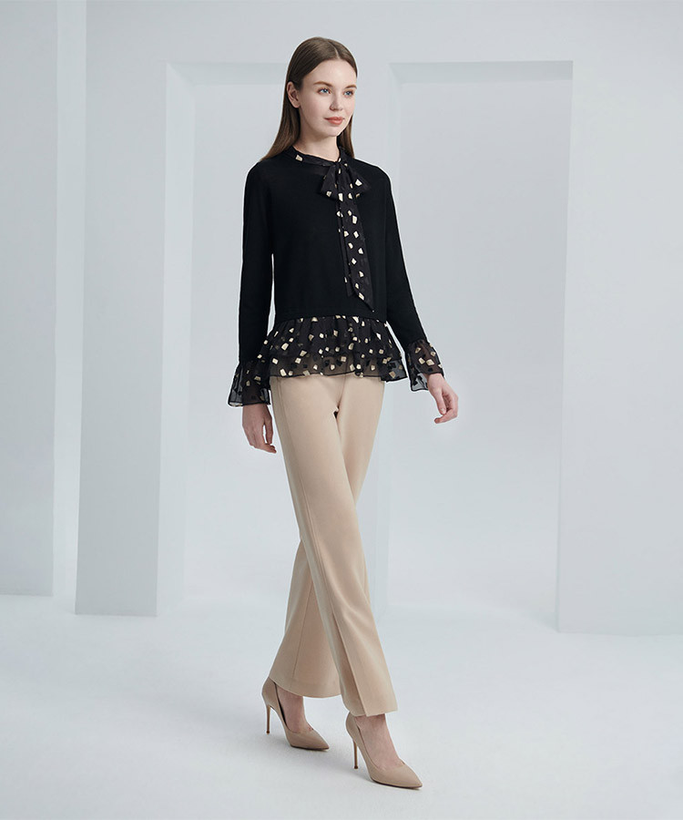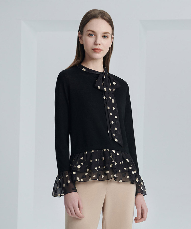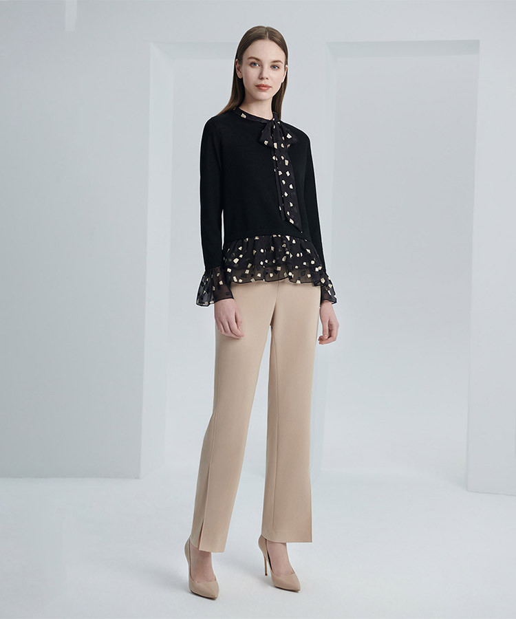 商品名称:宝姿秋季女装时尚拼接日常休闲修身简约气质针织衫 918346