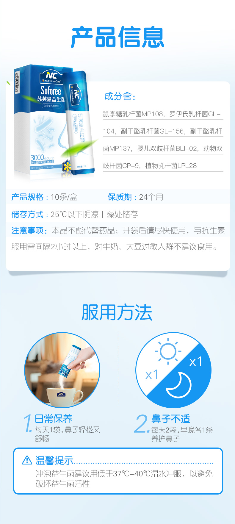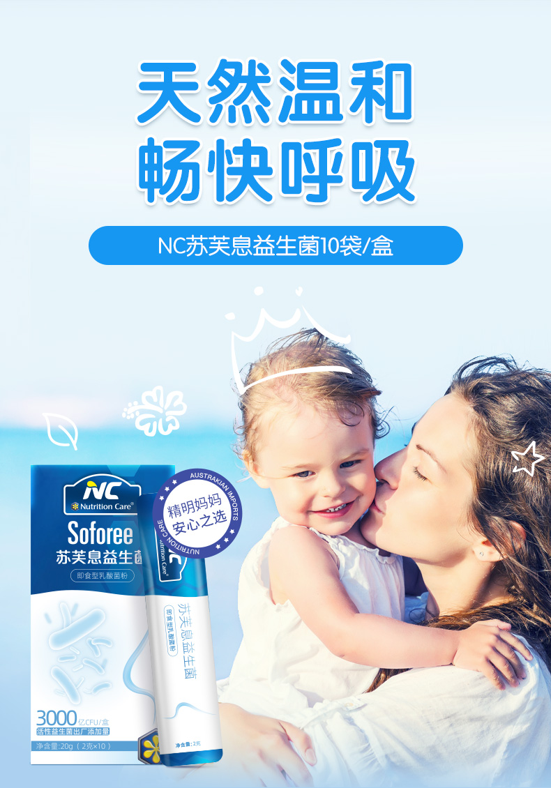 商品名称:Nutrition Care苏芙息舒鼻益生菌2g*10条儿童体质大人鼻肠道肠胃冻干粉