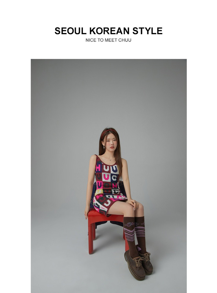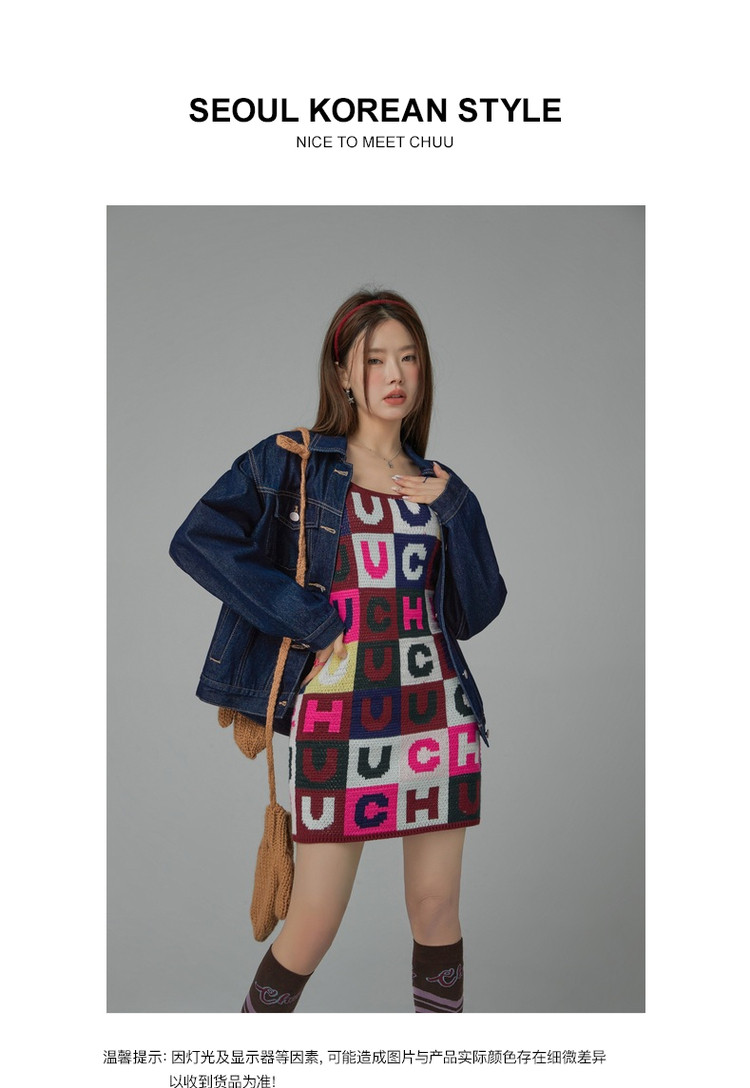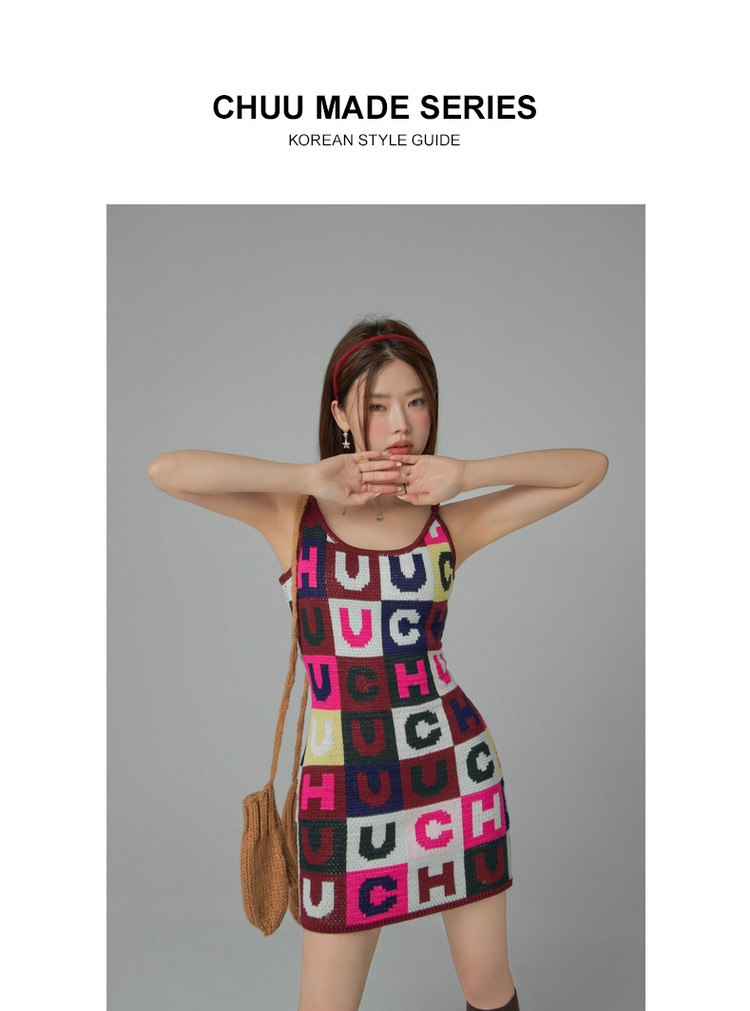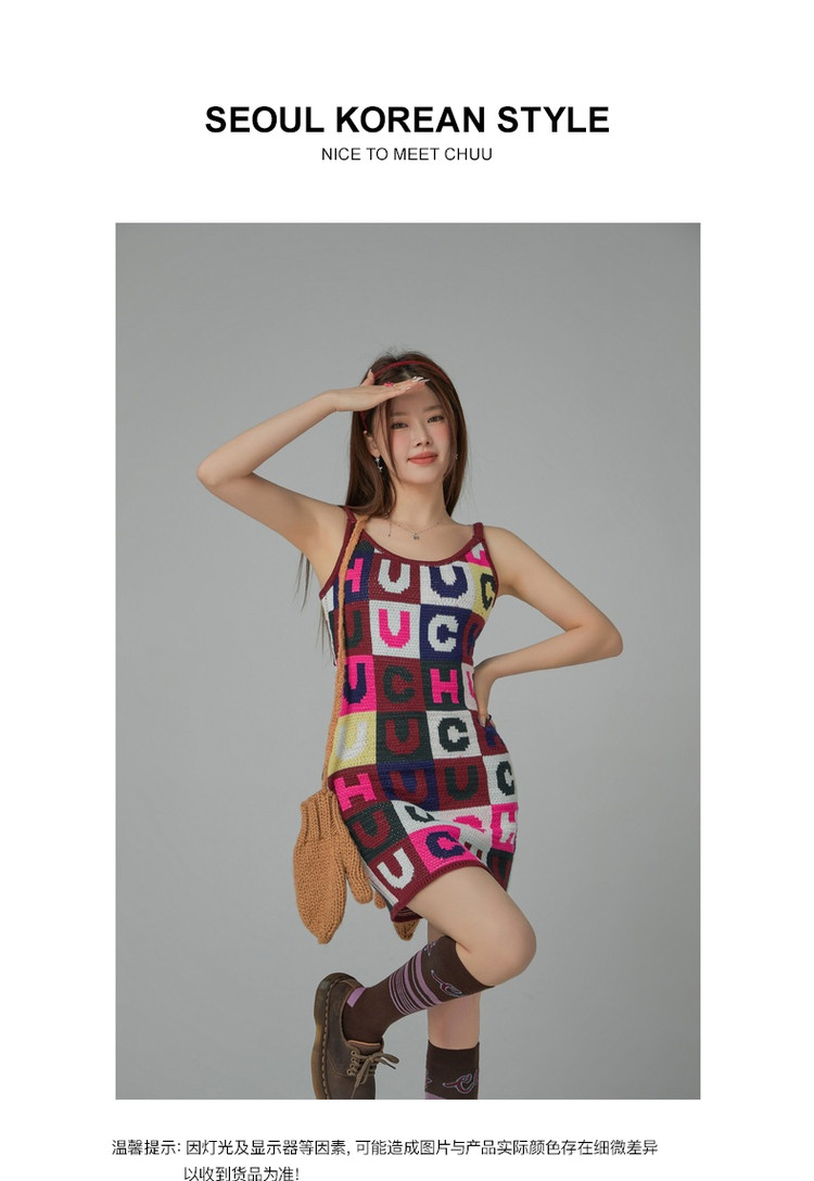 商品名称:CHUU字母满印连衣裙女士春秋吊带a字包臀针织短裙 323539