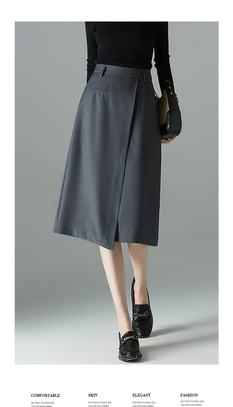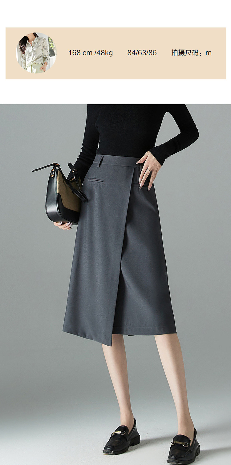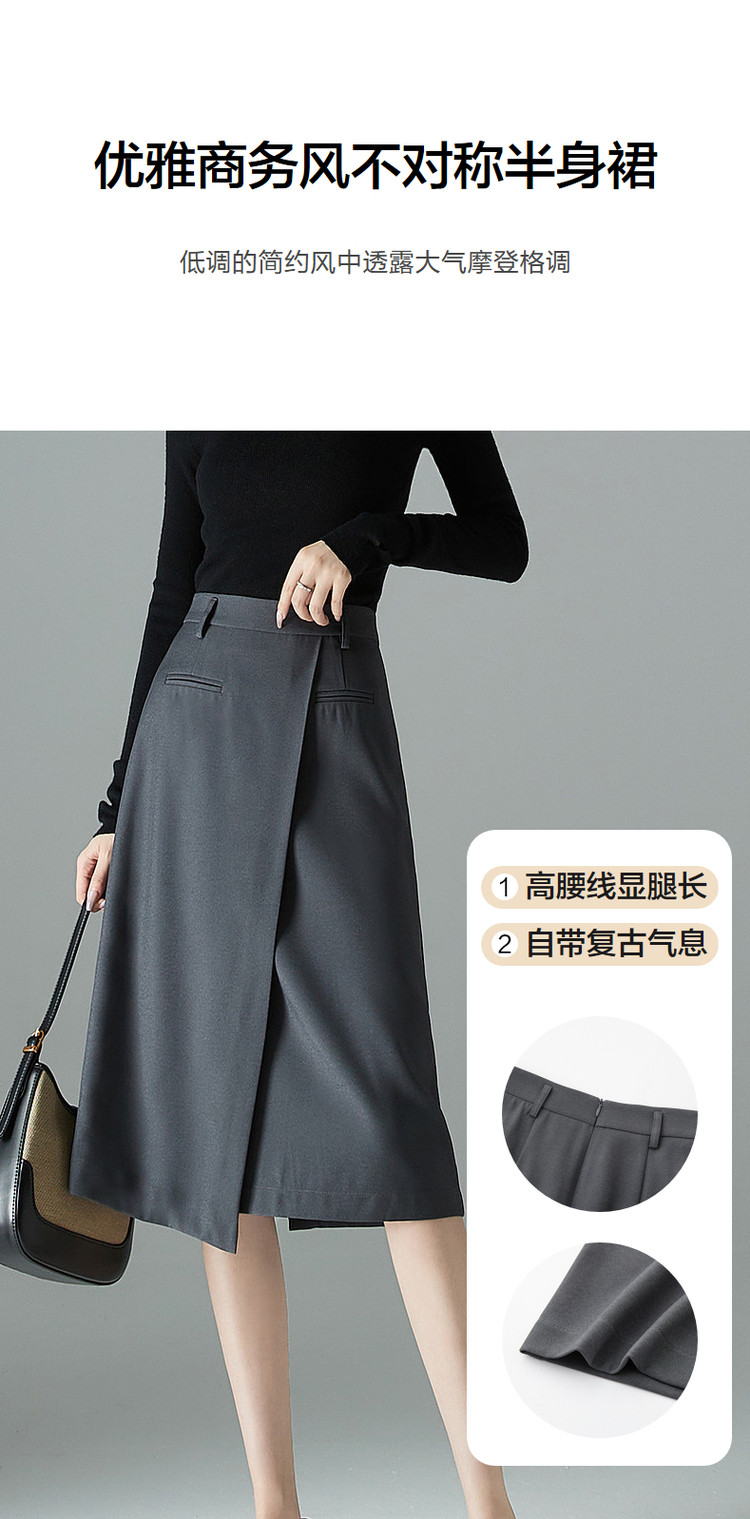 商品名称:【美拉德轻通勤】春秋新优雅OL商务中腰不规则半身裙女中长款 483585