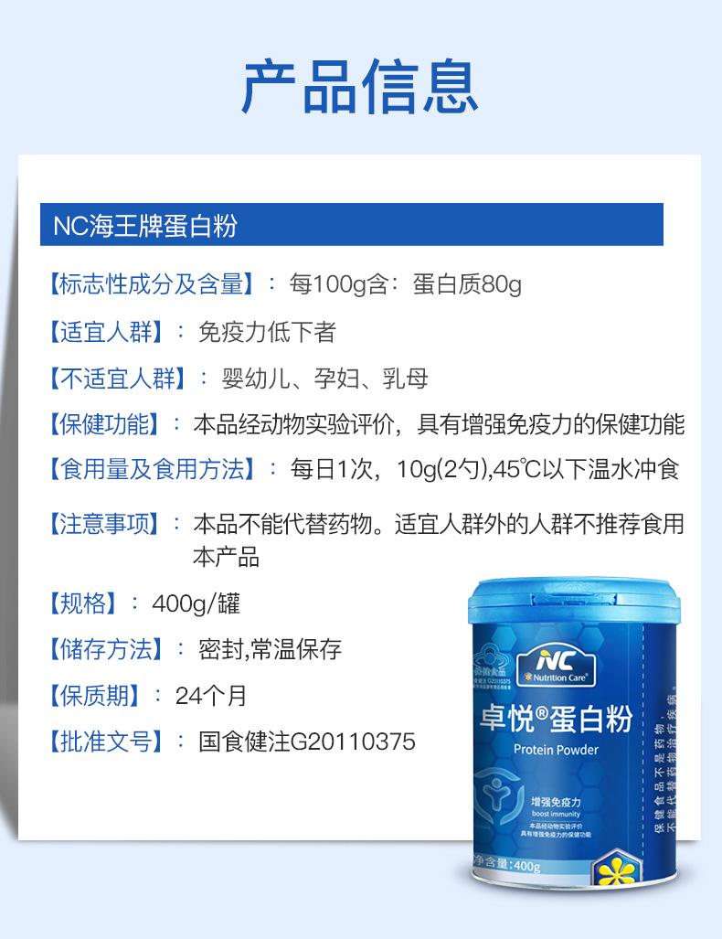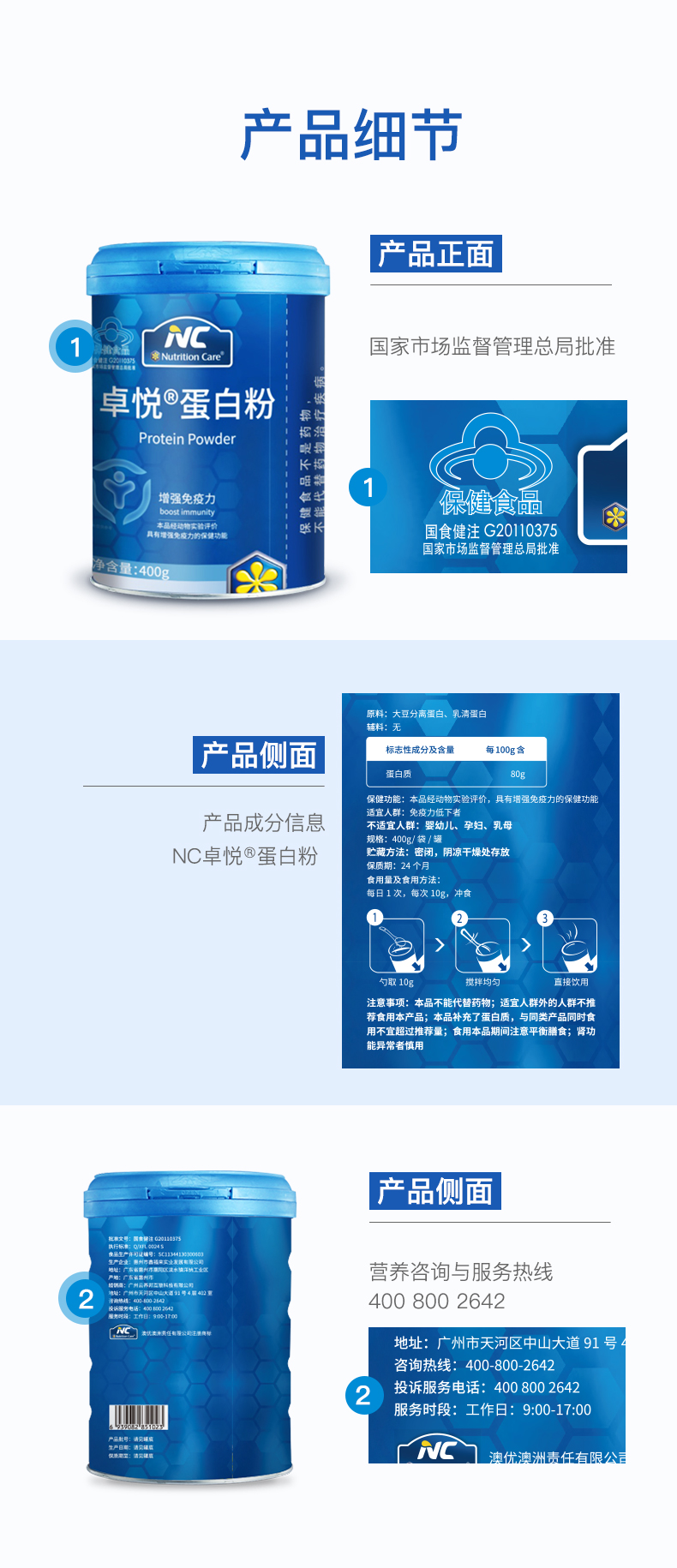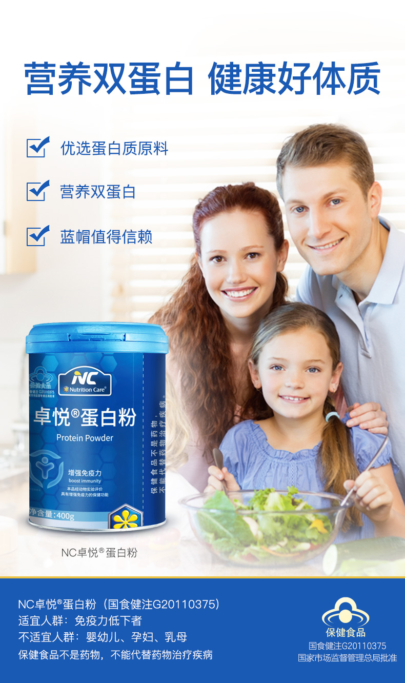 商品名称:Nutrition Care 卓悦蛋白粉400g乳清蛋白大豆分离成人儿童营养品中老年人补品