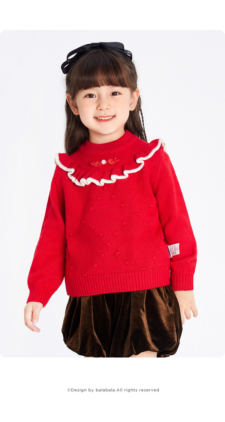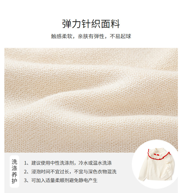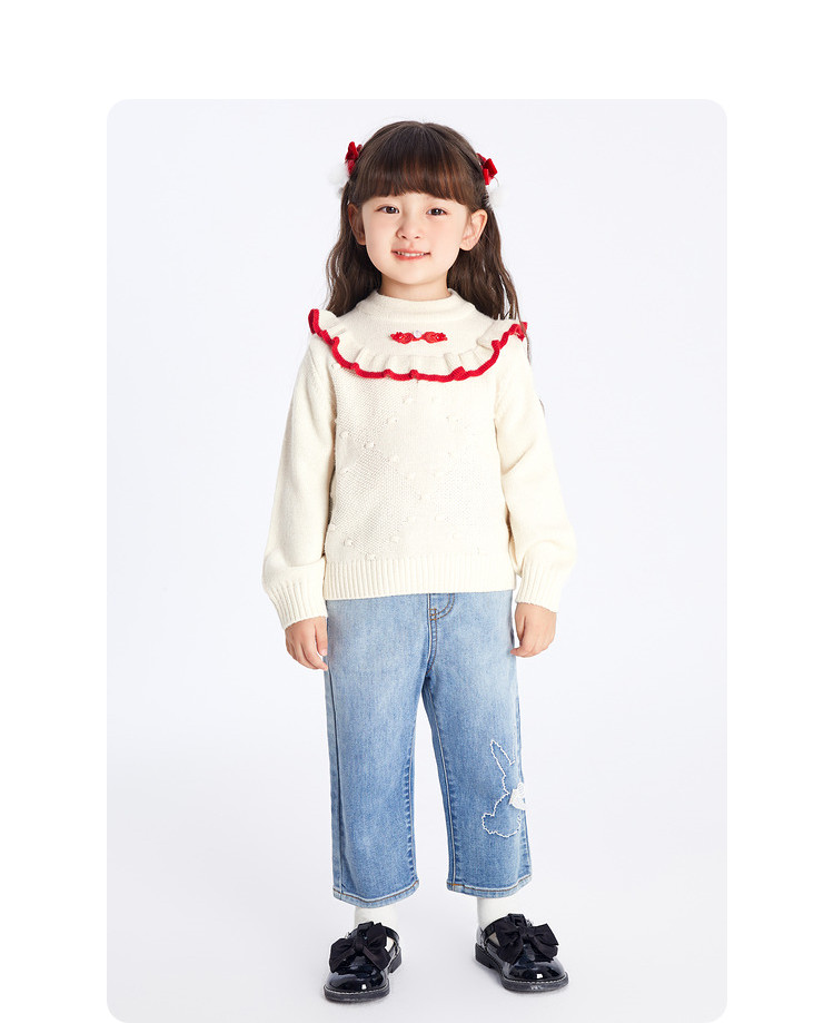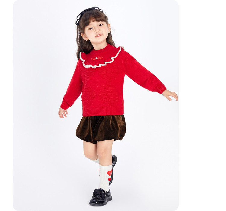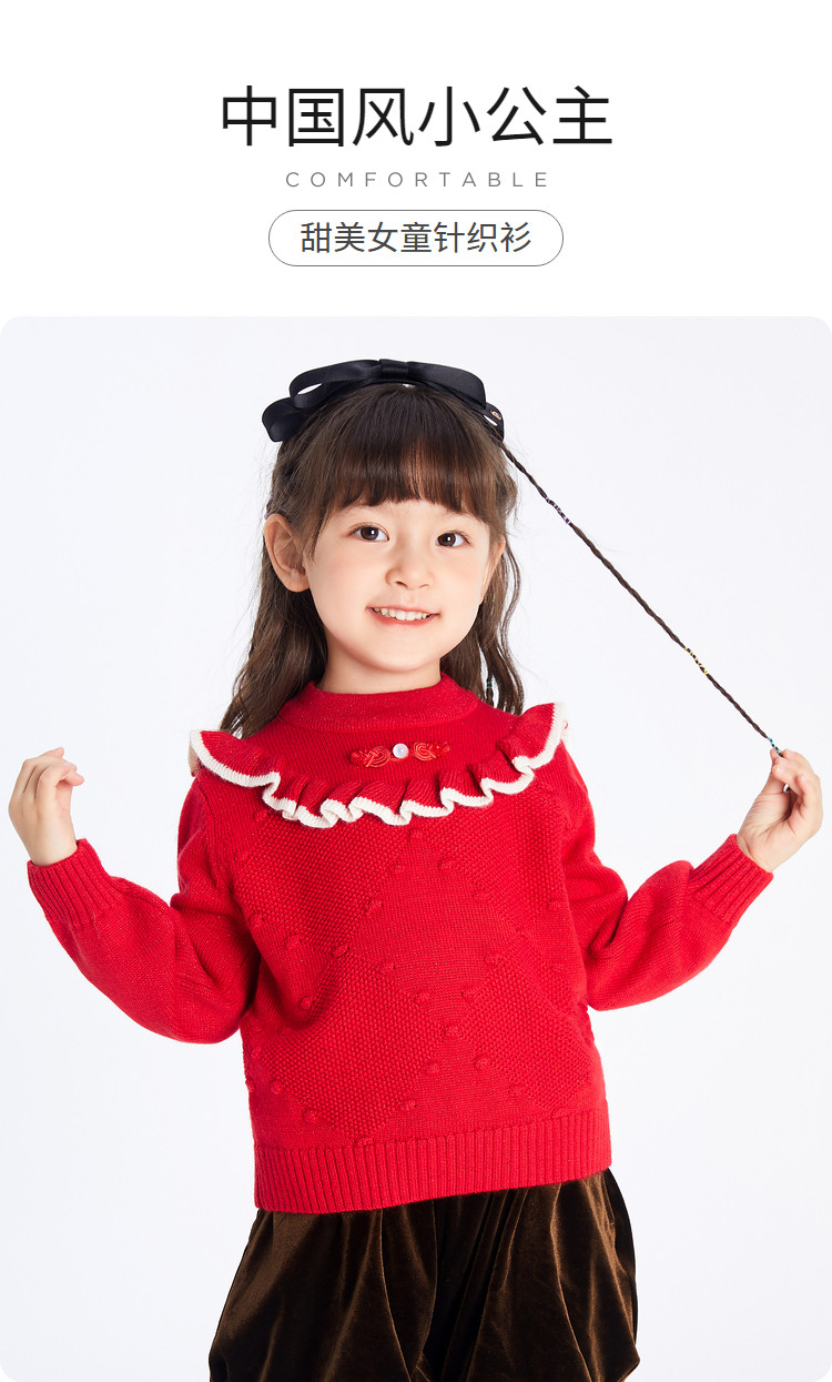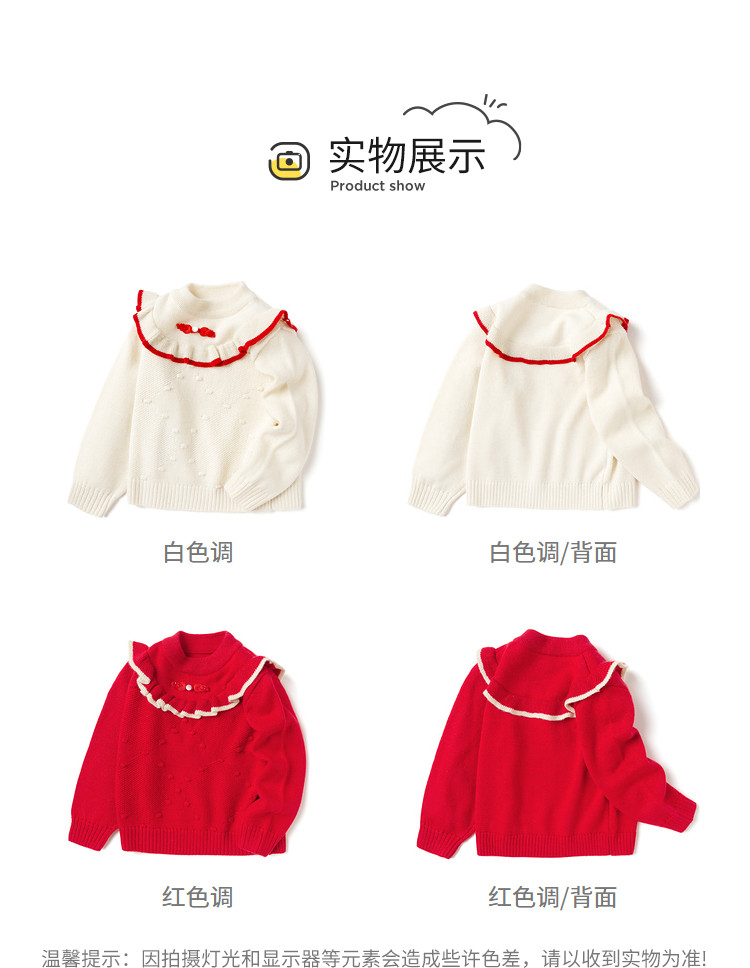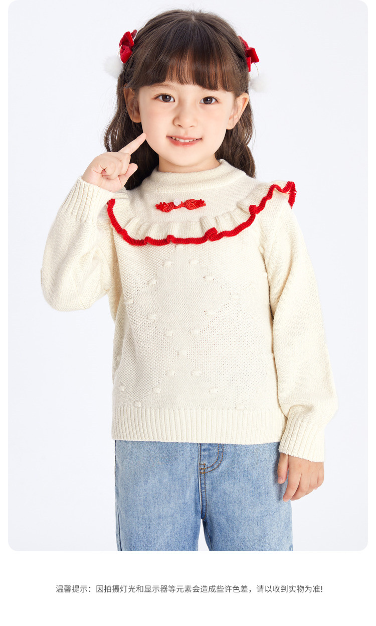 商品名称:国风翻领毛衣女童儿童毛衫春秋装小童宝宝针织衫上衣童装甜美花边 630021