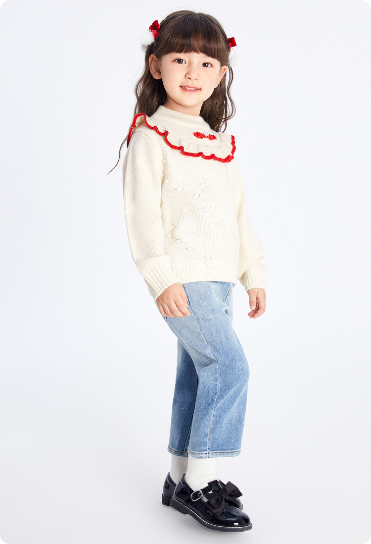 国风翻领毛衣女童儿童毛衫春秋装小童宝宝针织衫上衣童装甜美花边 630021
