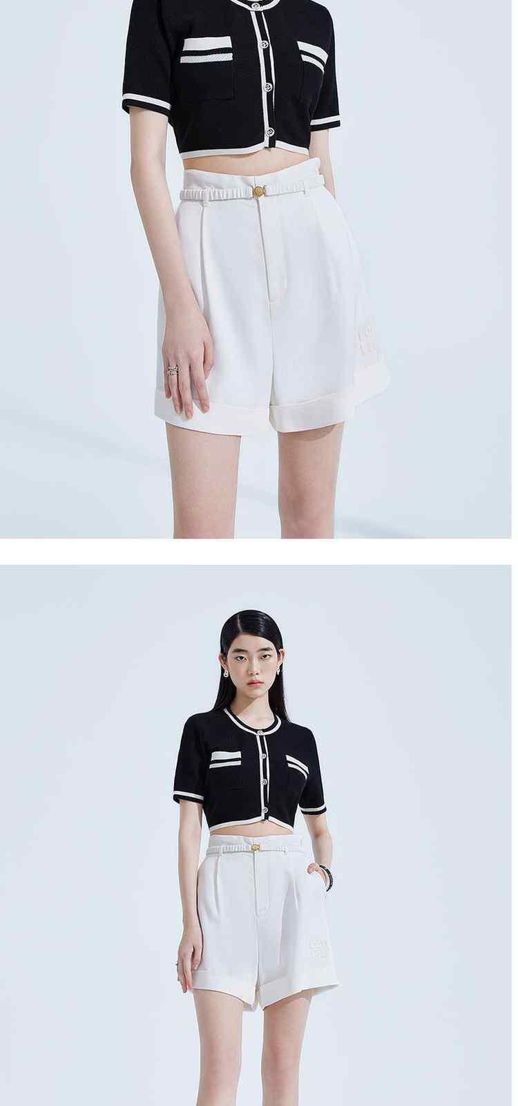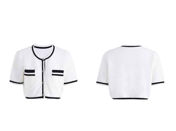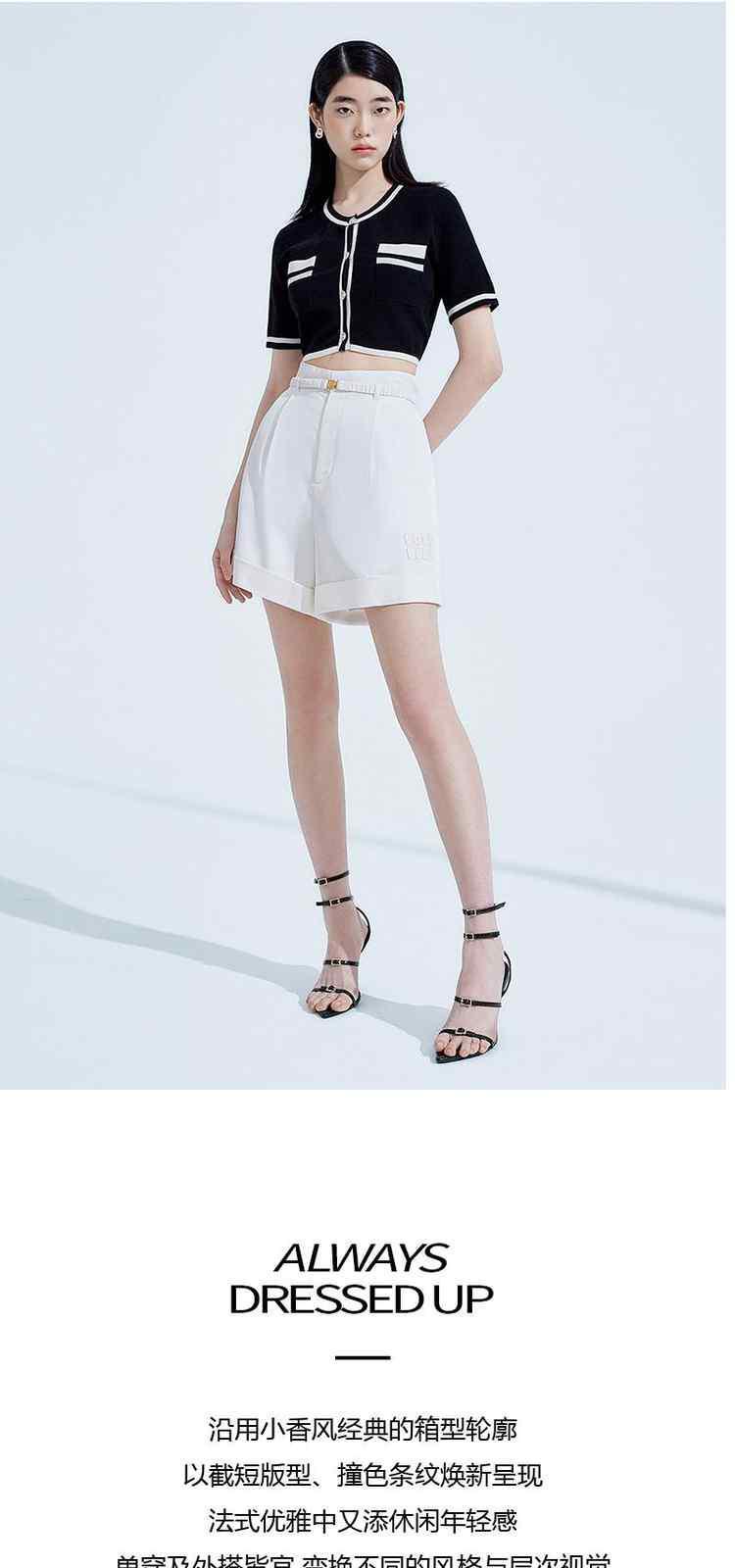 商品名称:黑标系列夏装 小香风撞色短款开衫短袖针织外套女 697999