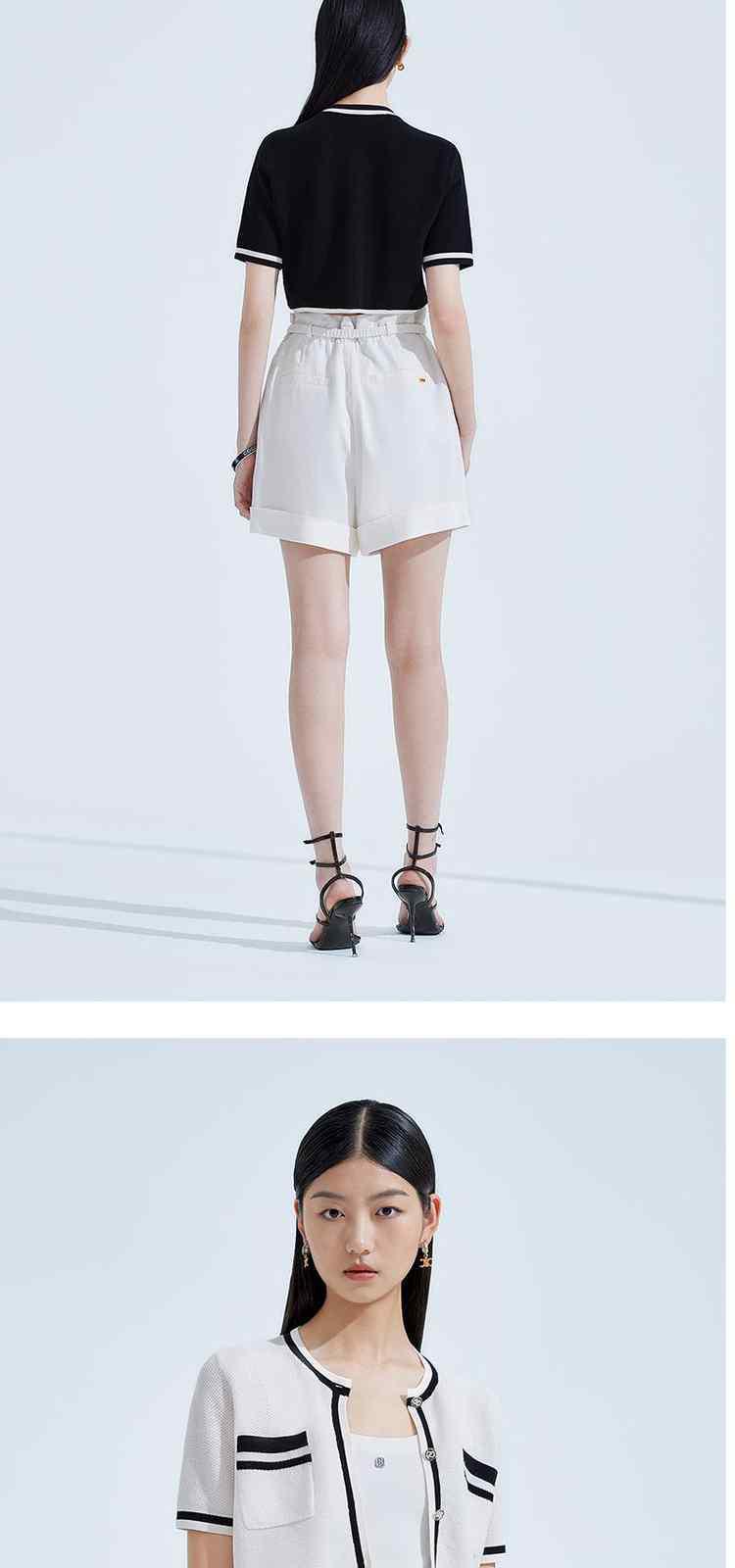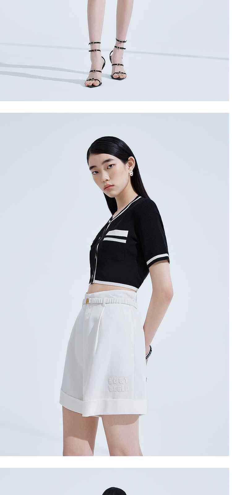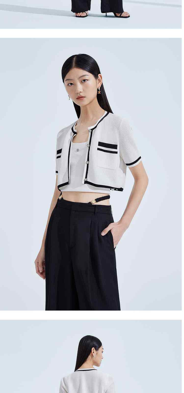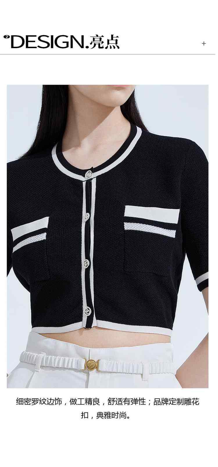黑标系列夏装 小香风撞色短款开衫短袖针织外套女 697999