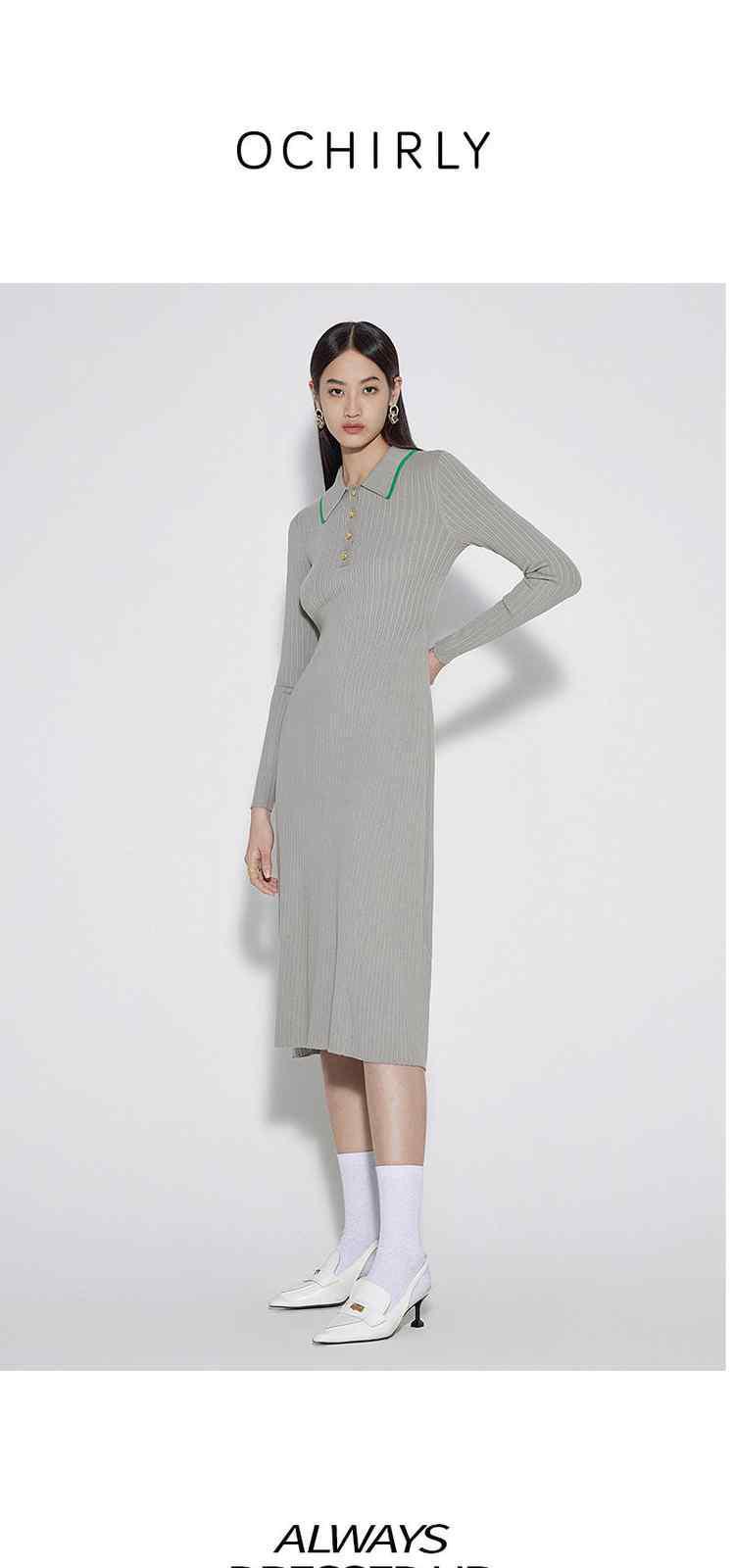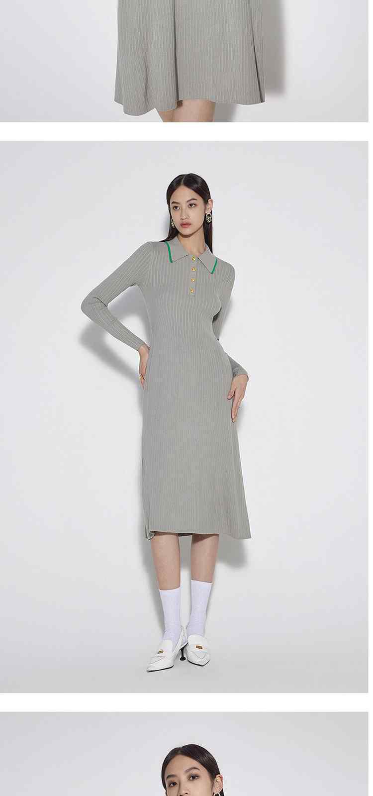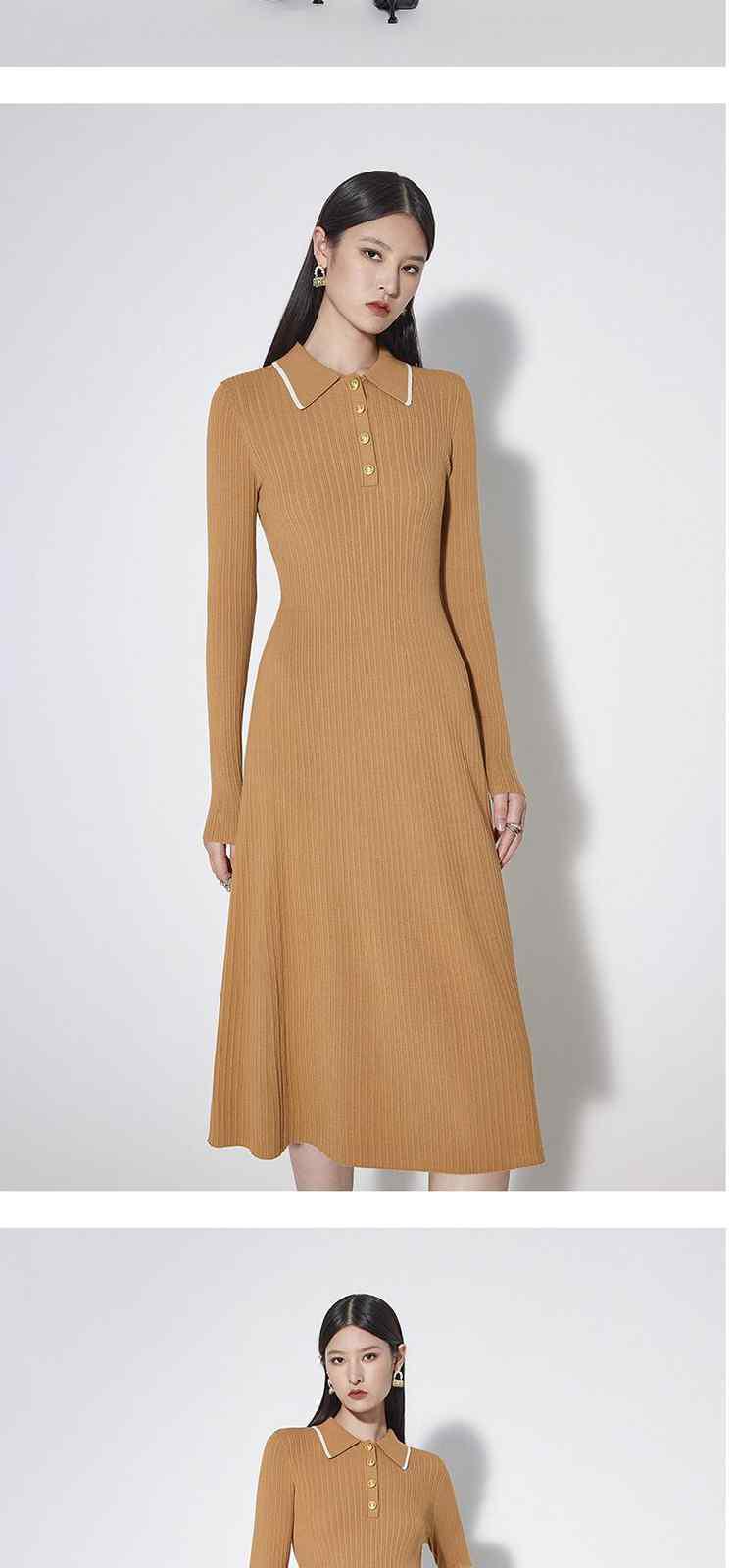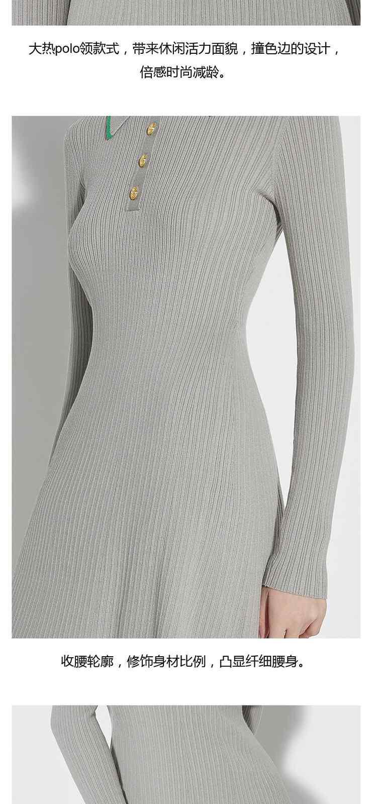 商品名称:春装 撞色坑条显瘦小香风polo领针织连衣裙 089615