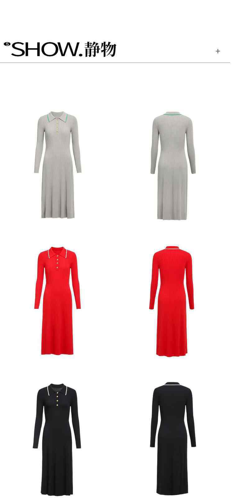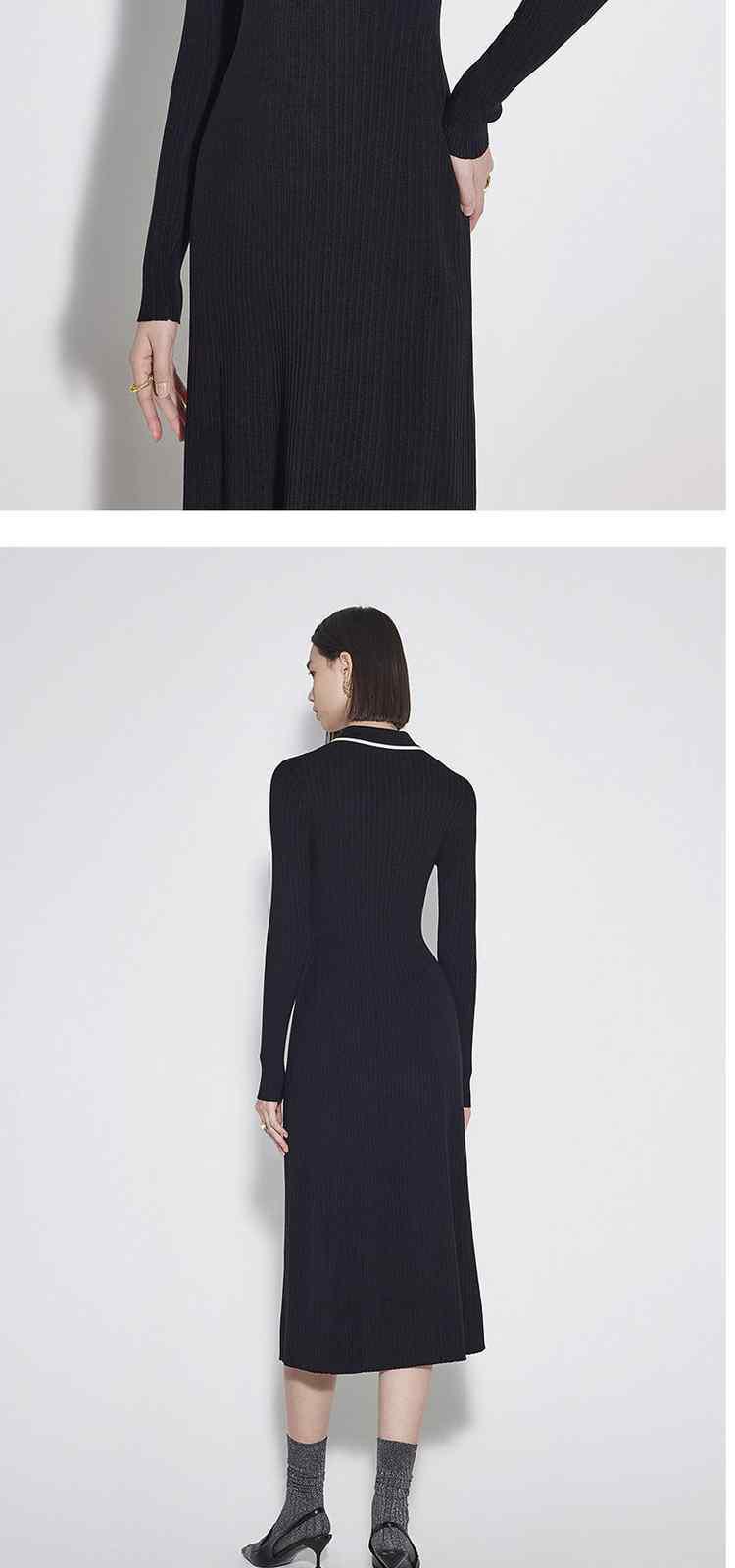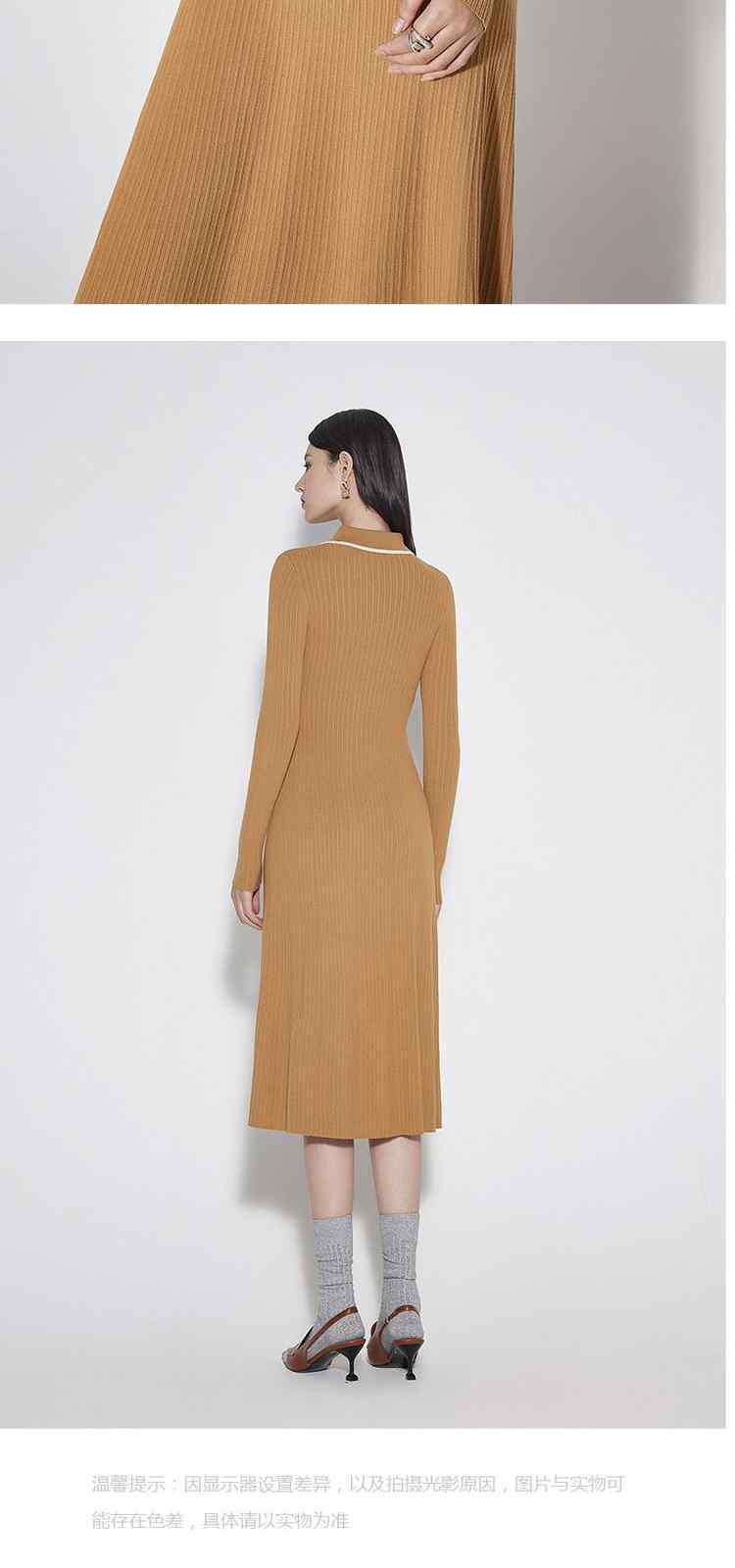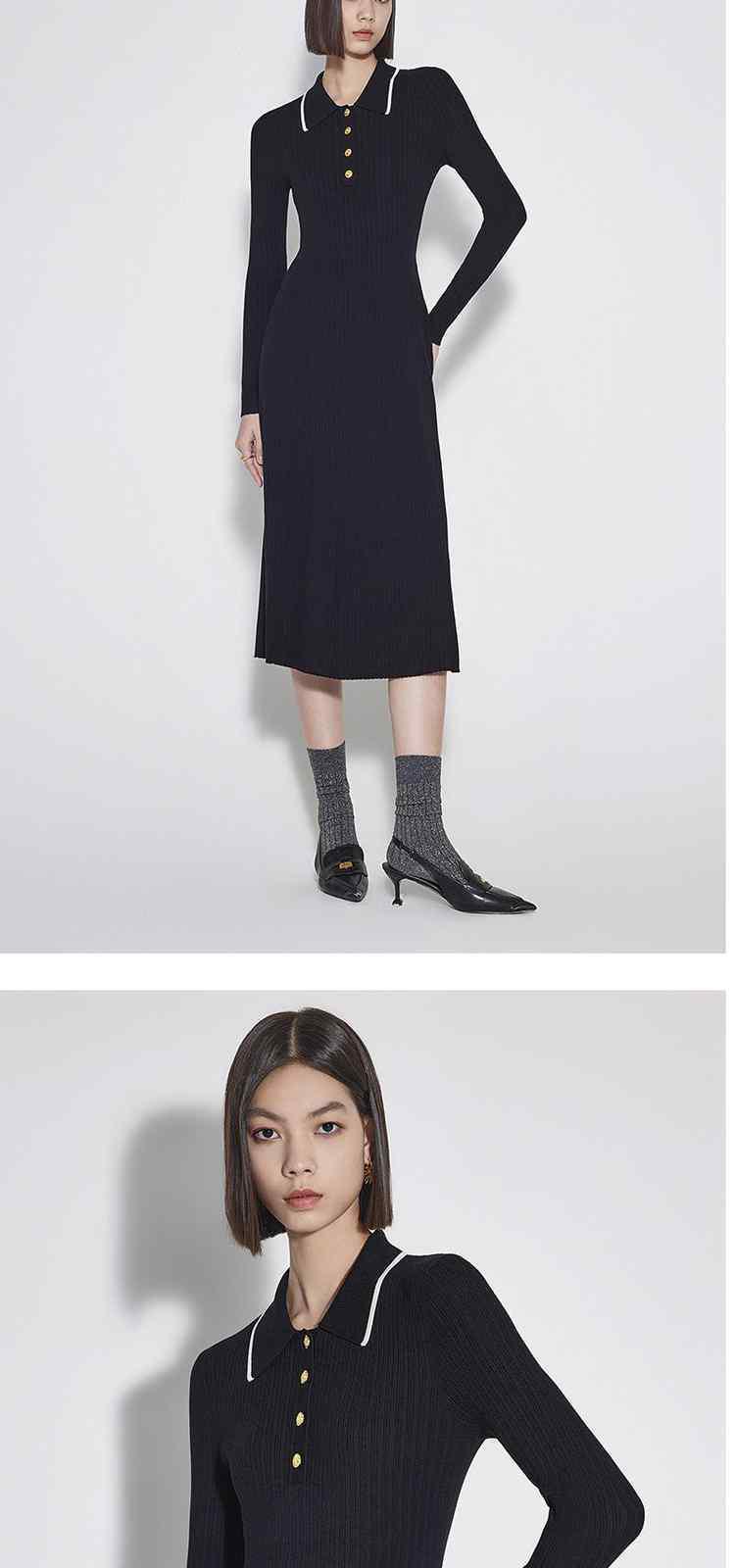 商品名称:春装 撞色坑条显瘦小香风polo领针织连衣裙 089615